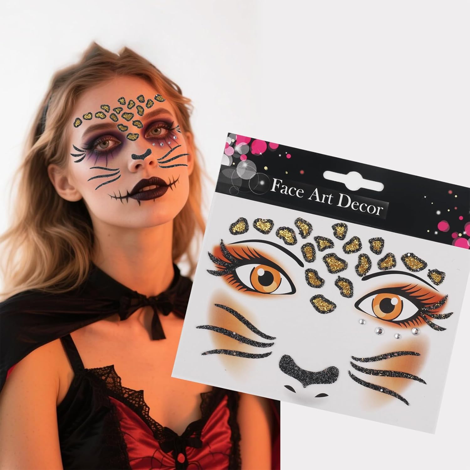 - Halloween Face Tattoo Stickers: Our Halloween face tattoo stickers come in animal theme design - such as leopard cheetah spider. Adding a touch of charming to your Halloween look and making you the center of attention at any party.