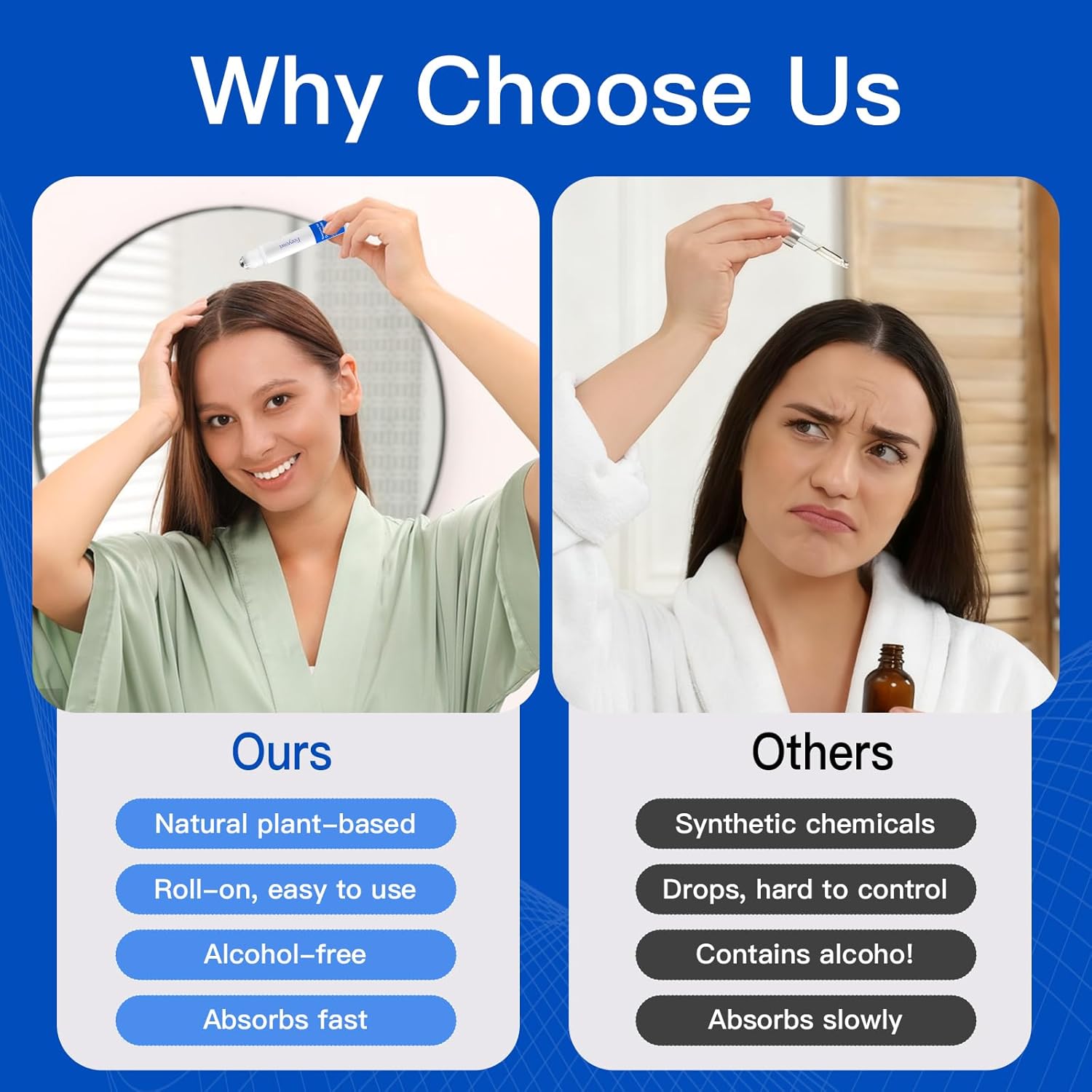 - Mess-Free Precision Roller: The roll-on design targets thinning areas more effectively than sprays or oils, ensuring precise and mess-free application directly to the scalp. Absorbs faster and leaves no residue.