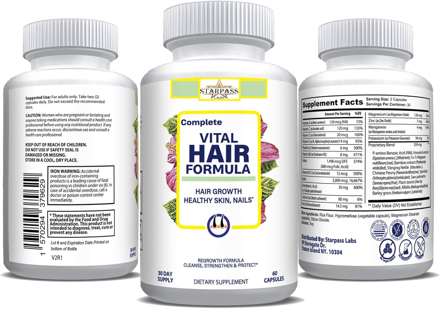 #1 Hair Formula Healthy Vitamins for Men & Women | Nutrients Needed for Hair Growth, Maintain Healthy Skin & Nails, Biotin & More 60 Capsules