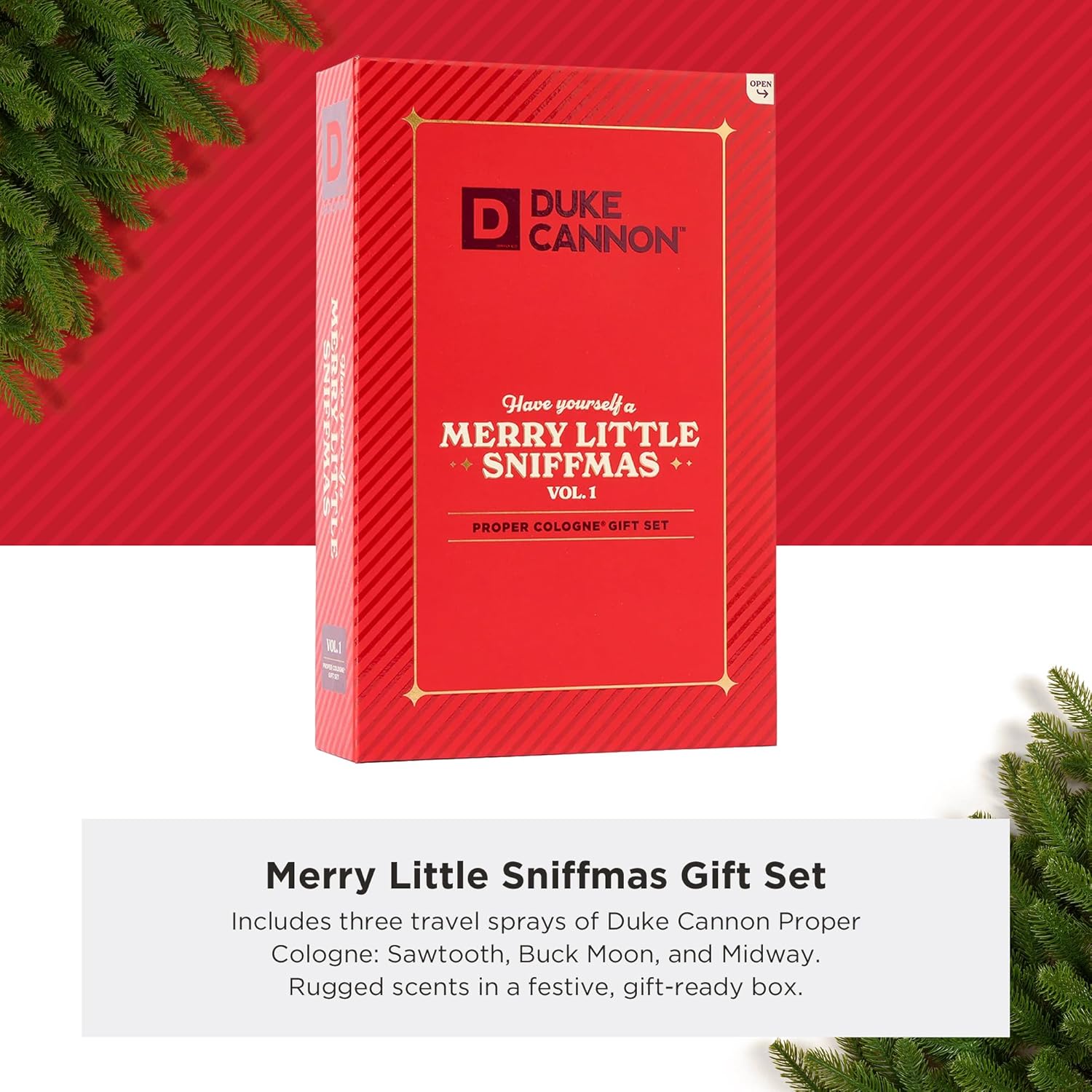 Duke Cannon Merry Little Sniffmas Giftset - travel-sized trio of Duke Cannon Proper Cologne® - Holiday Cologne Gift Set - eau de parfum - Sawtooth, Buck Moon, Midway