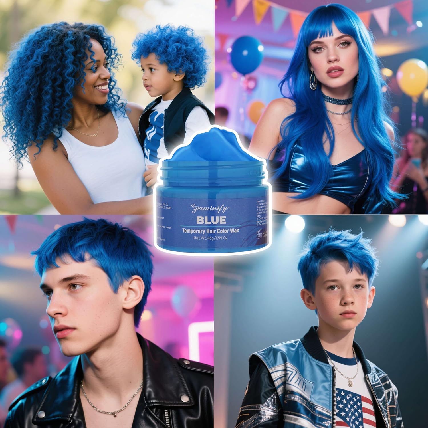 - Instant Blue Temporary Hair Color:Transform your look in seconds with paminify blue temporary hair coloring wax—no bleach, no damage, just instant vibrant color. Perfect for short-term style changes