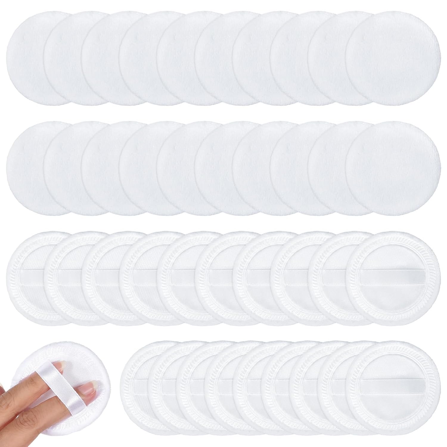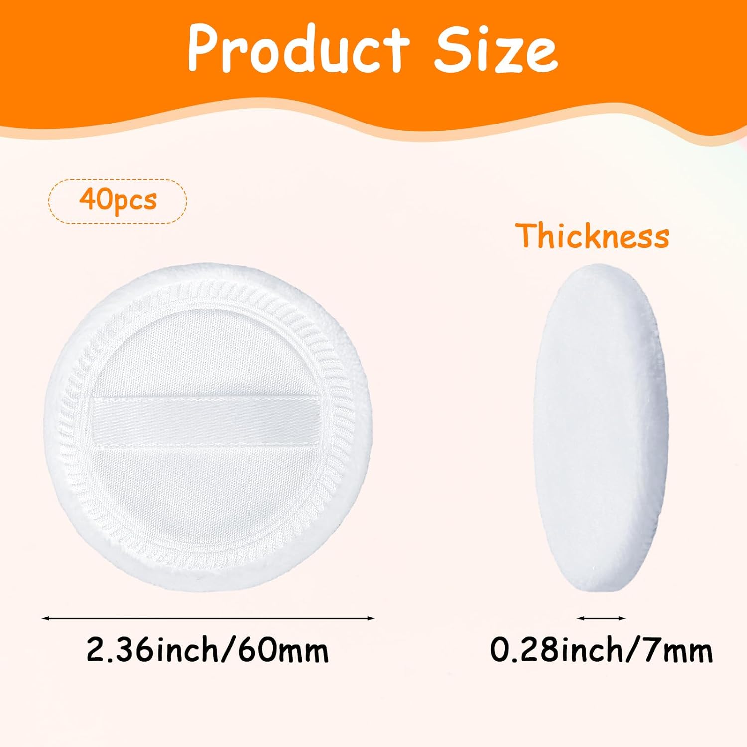 40PCS Cotton Powder Puffs Pure Cotton Soft Washable Loose Powder Puff Makeup Puffs for Powders Foundation with Ribbon 2.36 Inch Round Makeup Dusting Powders Puff for Loose Body Wet Dry