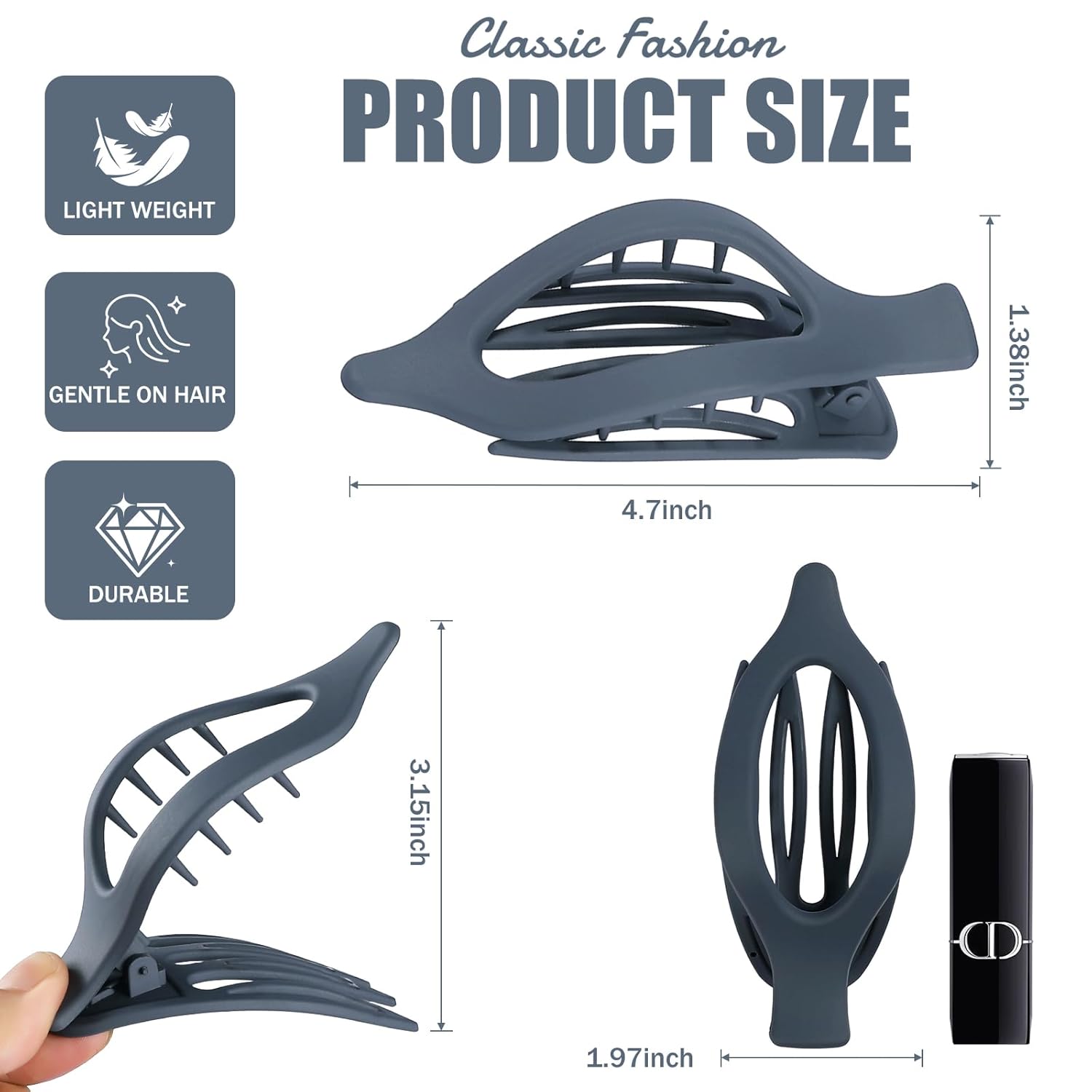 - 【Strong Grip】lt can grip your hair at any time. Non-slip Design. No matter you're exercising, doing housework and so on, your hairstyle won't get messed up.