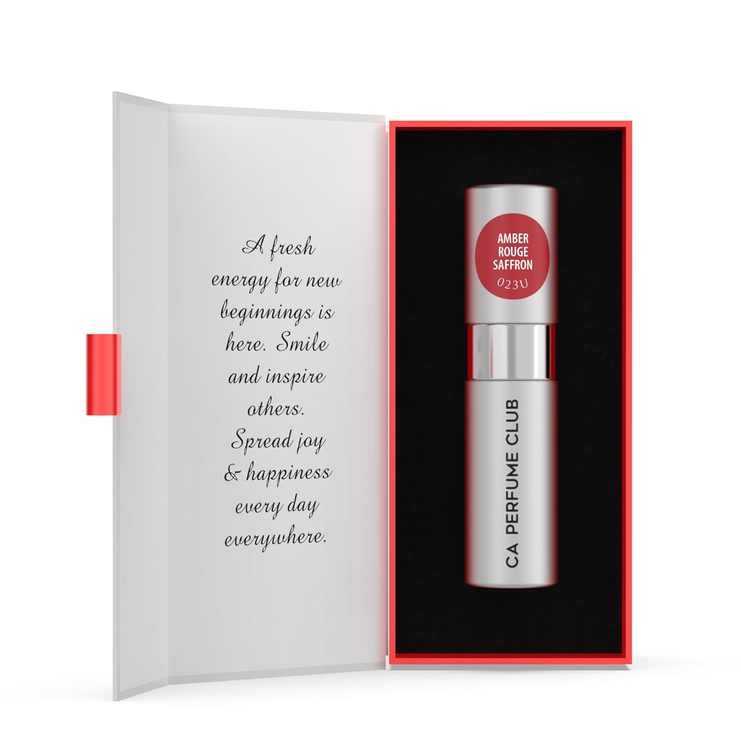 CA Perfume Impression of Amber Rouge Saffron for Women and Men Amber Floral Scent Long Lasting Unisex Fragrance Eau De Parfum Travel Size Refillable Atomizer Spray 0.27 Fl Oz 8ml (Pack of 3)