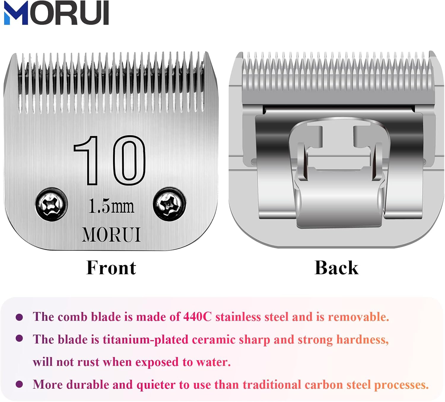 Detachable Pet Dog Clipper Blades UltraEdge Compatible with Oster A5,Wahl KM10 Series Clippers (10# 1.5mm- 2 Pack)