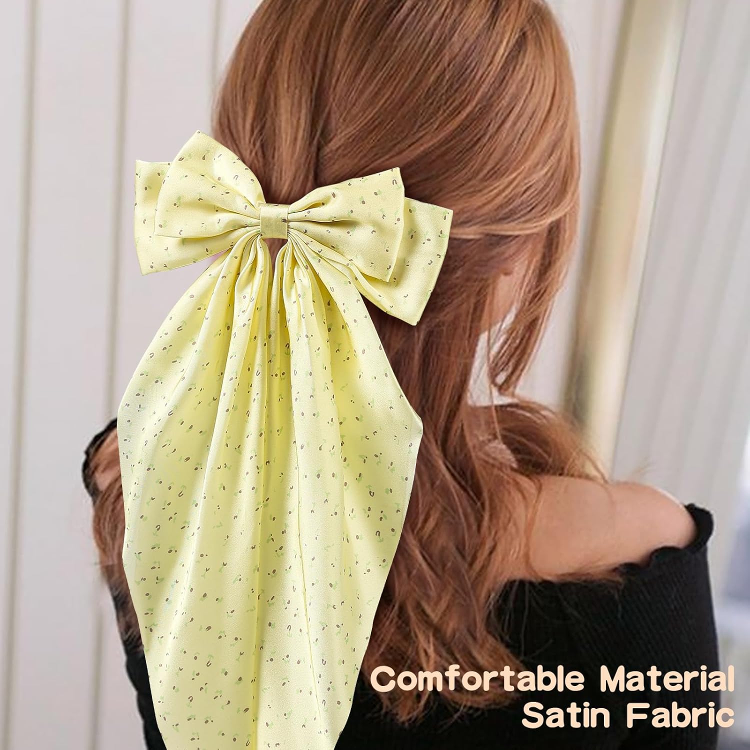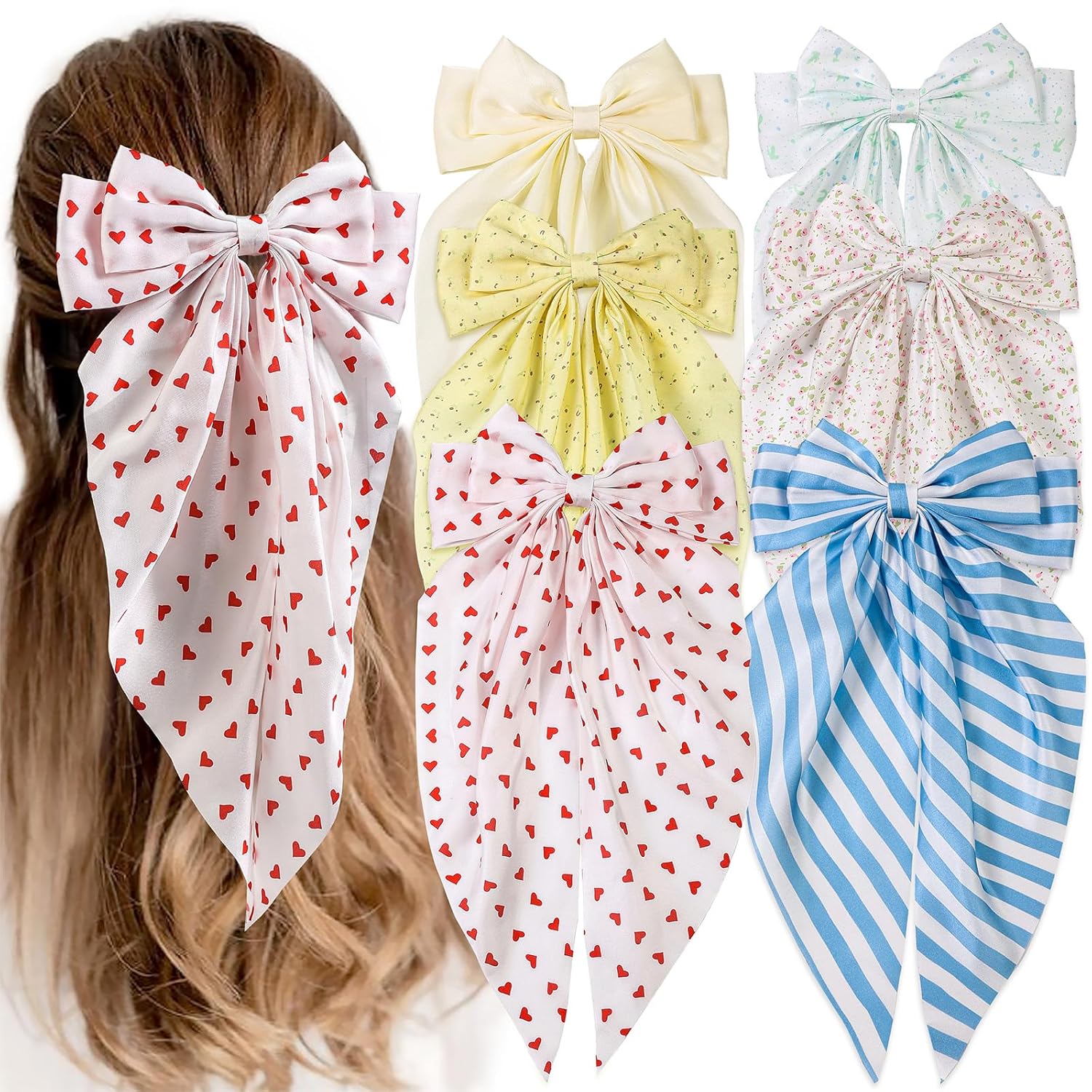6 PCS Hair Bows for Women, Big Bow Hair Clips for Girls, Silky Satin Hair Bows Clips Oversized Long Tail, Large Cute Aesthetic Hair Accessories, Metal Bow Hair Clips Holiday Gifts