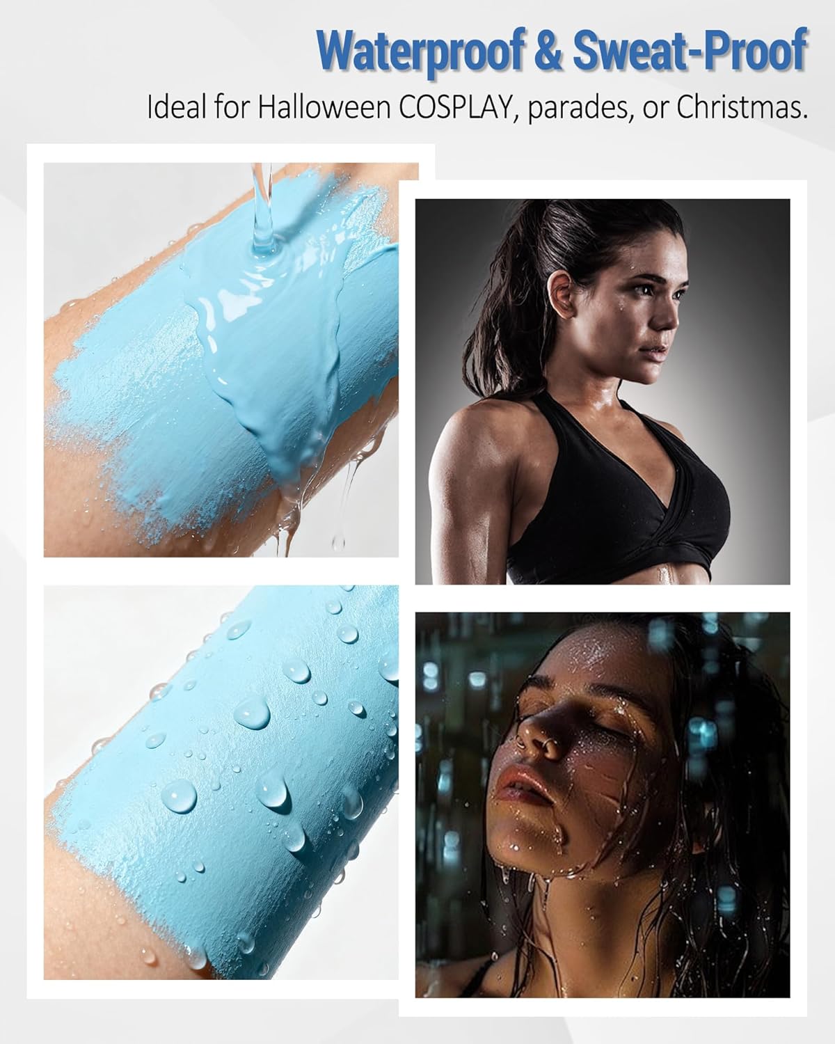 - Waterproof & Sweatproof – This blue face paint stick has strong waterproof, sweatproof performance—rain or water won’t budge your makeup. No need to worry about your carefully designed look smudging or fading. TIP: This face paint is hard to dry—so if you’re applying it to areas like the body or spots that might get touched, we highly recommend sealing it in with some setting powder or spray.