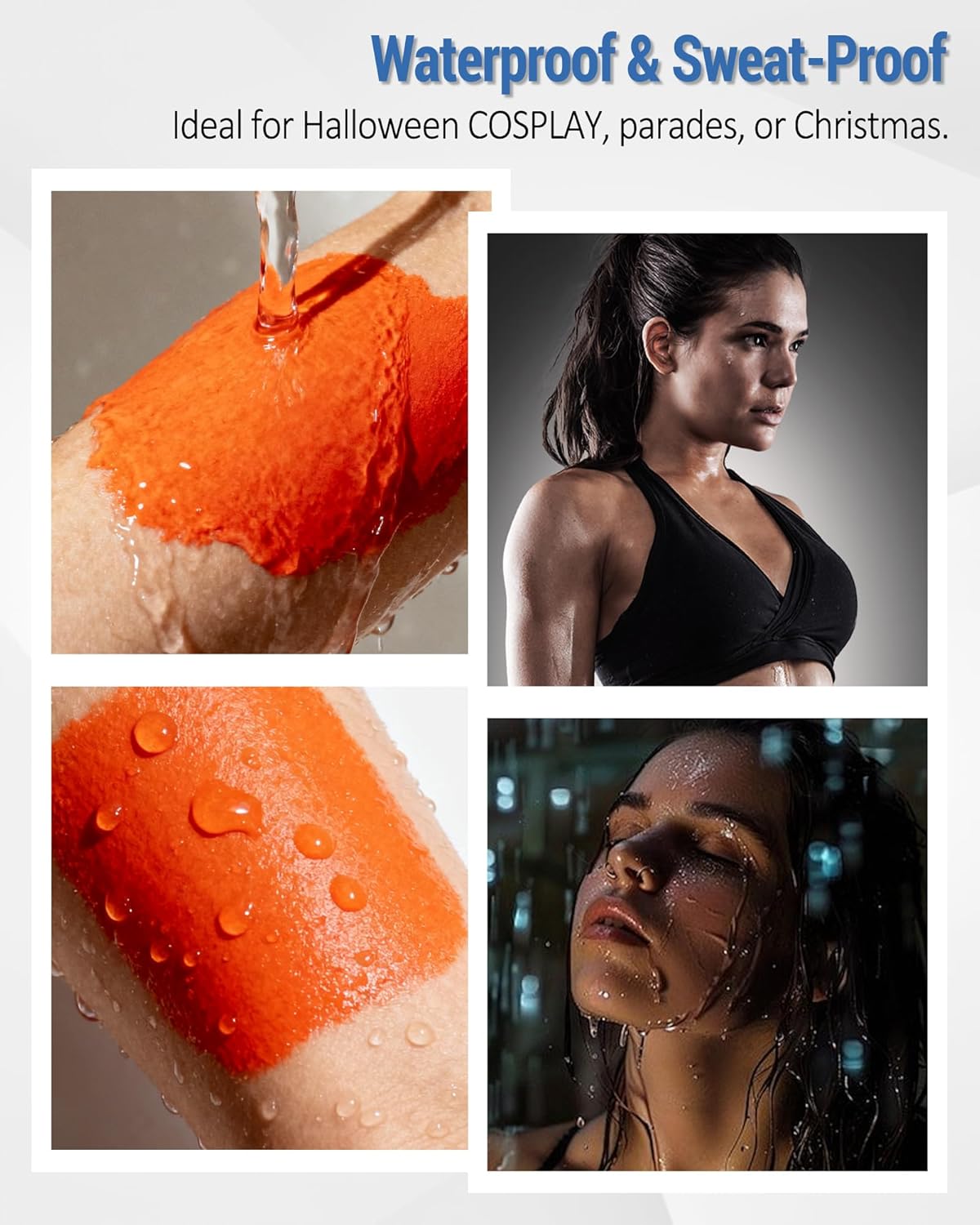 - Waterproof & Sweatproof – This dark orange face paint stick has strong waterproof, sweatproof performance—rain or water won’t budge your makeup. No need to worry about your carefully designed look smudging or fading. TIP: This face paint is hard to dry—so if you’re applying it to areas like the body or spots that might get touched, we highly recommend sealing it in with some setting powder or spray.