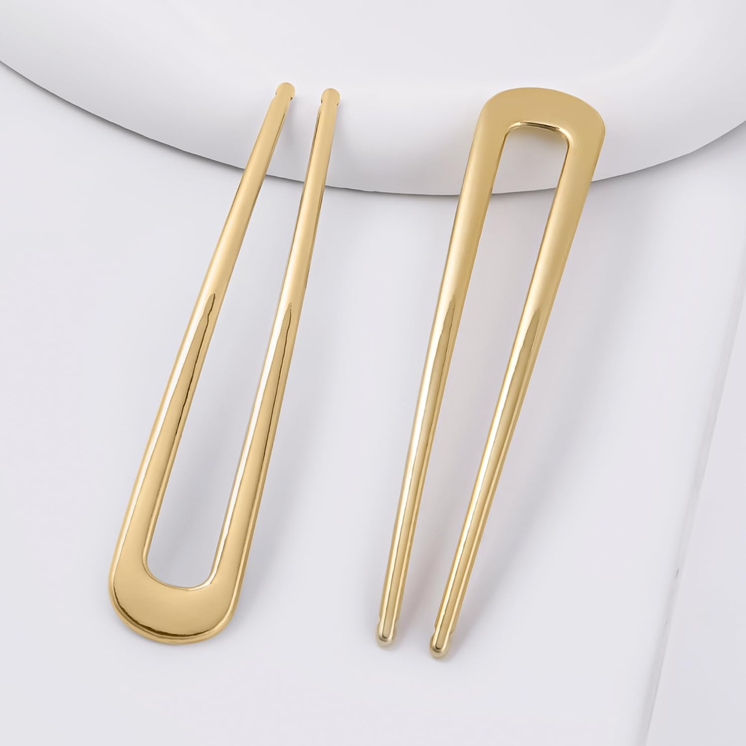 6Pcs Metal French Hair Pins for Women U Shape Sticks 3.9 Inch Vintage Fork for Hairstyle Accessories(Gold)