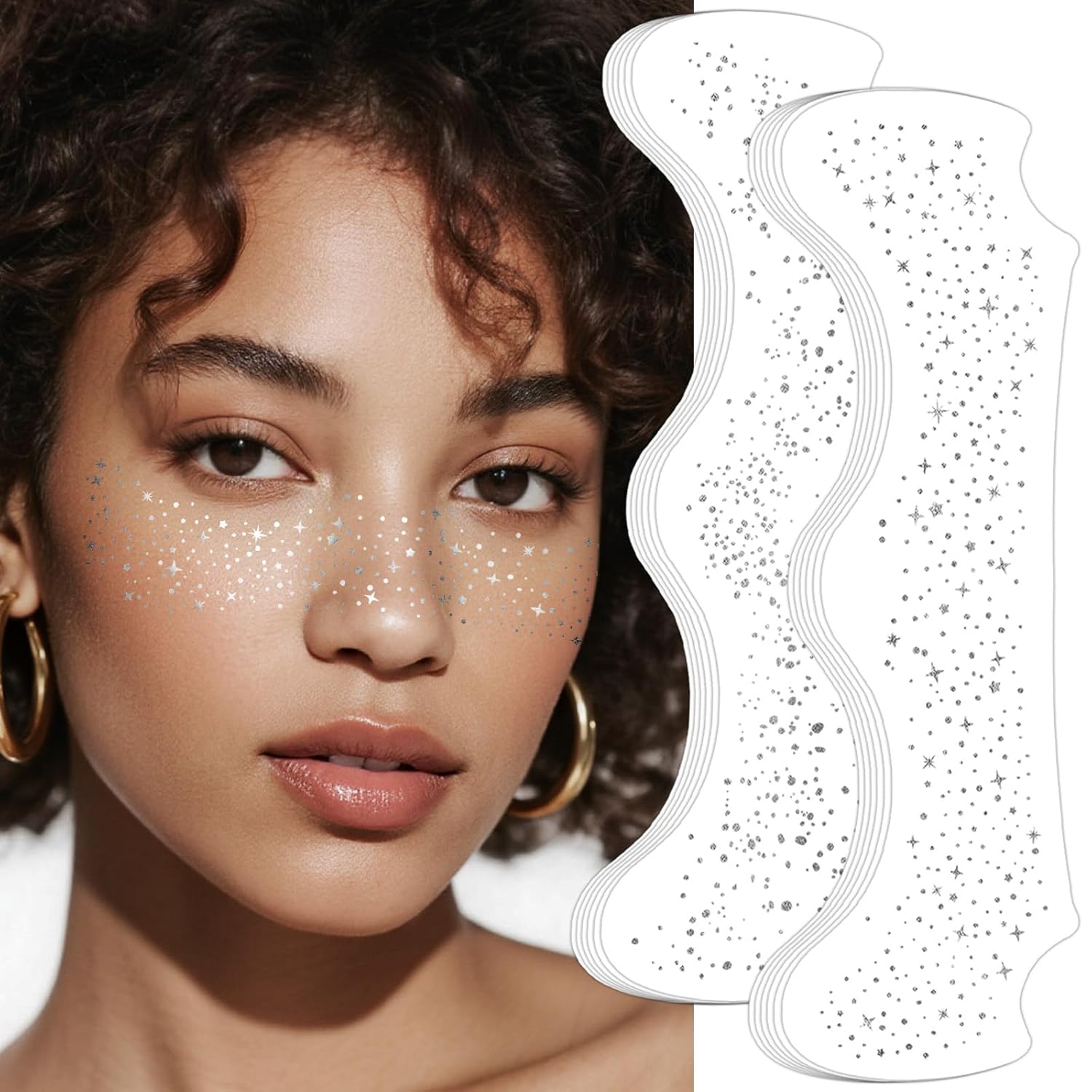 - 【24-Piece Silver Glitter Freckles Kit】: Includes 12 silver star + 12 silver dot, 4x more designs than standard sets. Effortlessly complement any makeup look—or add a touch of glamour to your natural style. Perfect for parties, festivals, or everyday sparkle! One kit covers multiple styles without repurchasing!