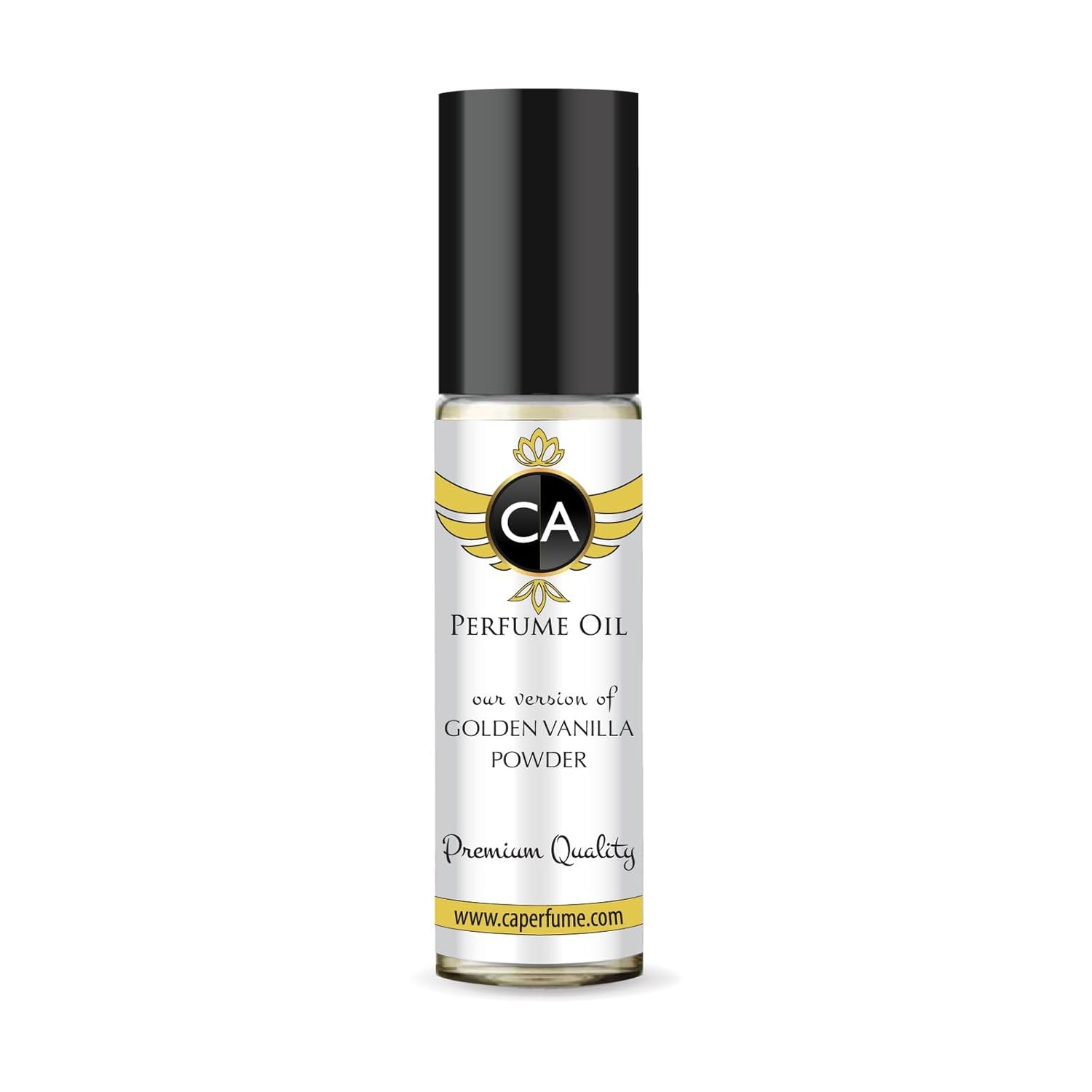 CA Perfume Impression of Golden Vanilla Powder Unisex Fragrance Oil a fragrance Scent Long Lasting Perfumes for Women & Men Travel Size TSA Ready Mini Parfum Body Oil Roll-on 0.33 Fl Oz 10ml