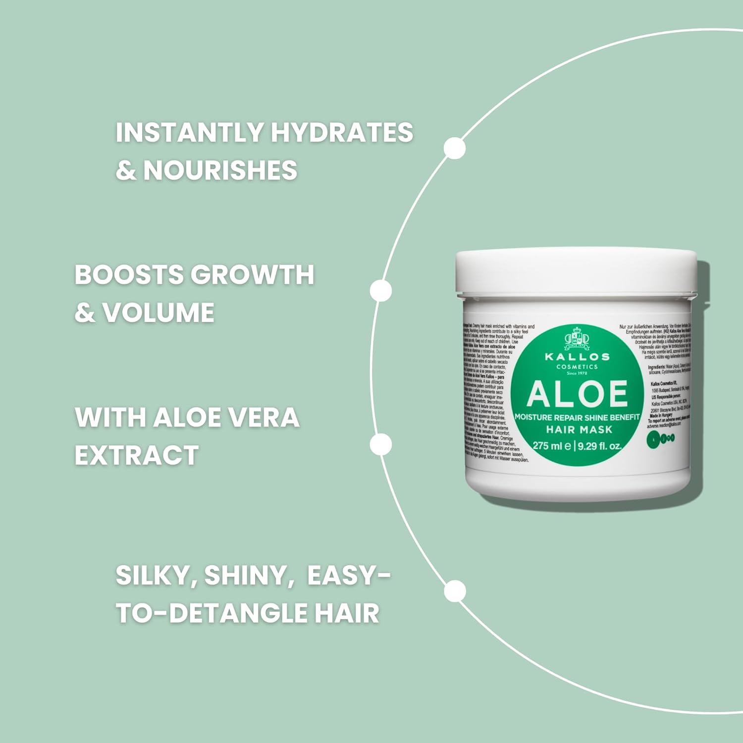 Kallos KJMN Aloe Moisture Repair Shine Hair Mask with Aloe Vera Extract & Vitamins 275 ml - 9,29 Fl Oz