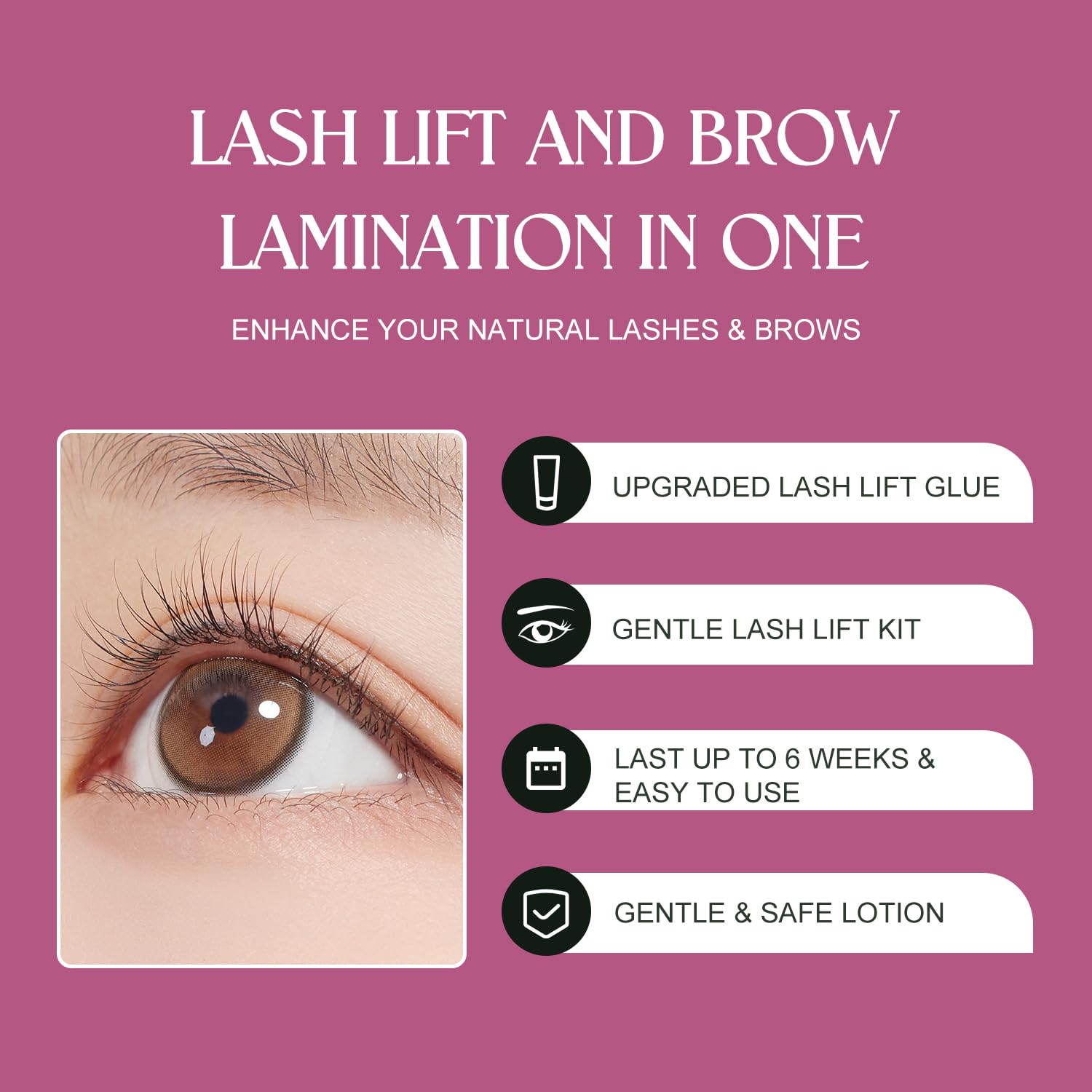 Lash & Brow Lift, Professional Lash Lift Kit Gentle Formula for Long-Lasting Natural Curl & Self Lash Lifting, Brow Lamination Set for Salon-Quality Results at Home