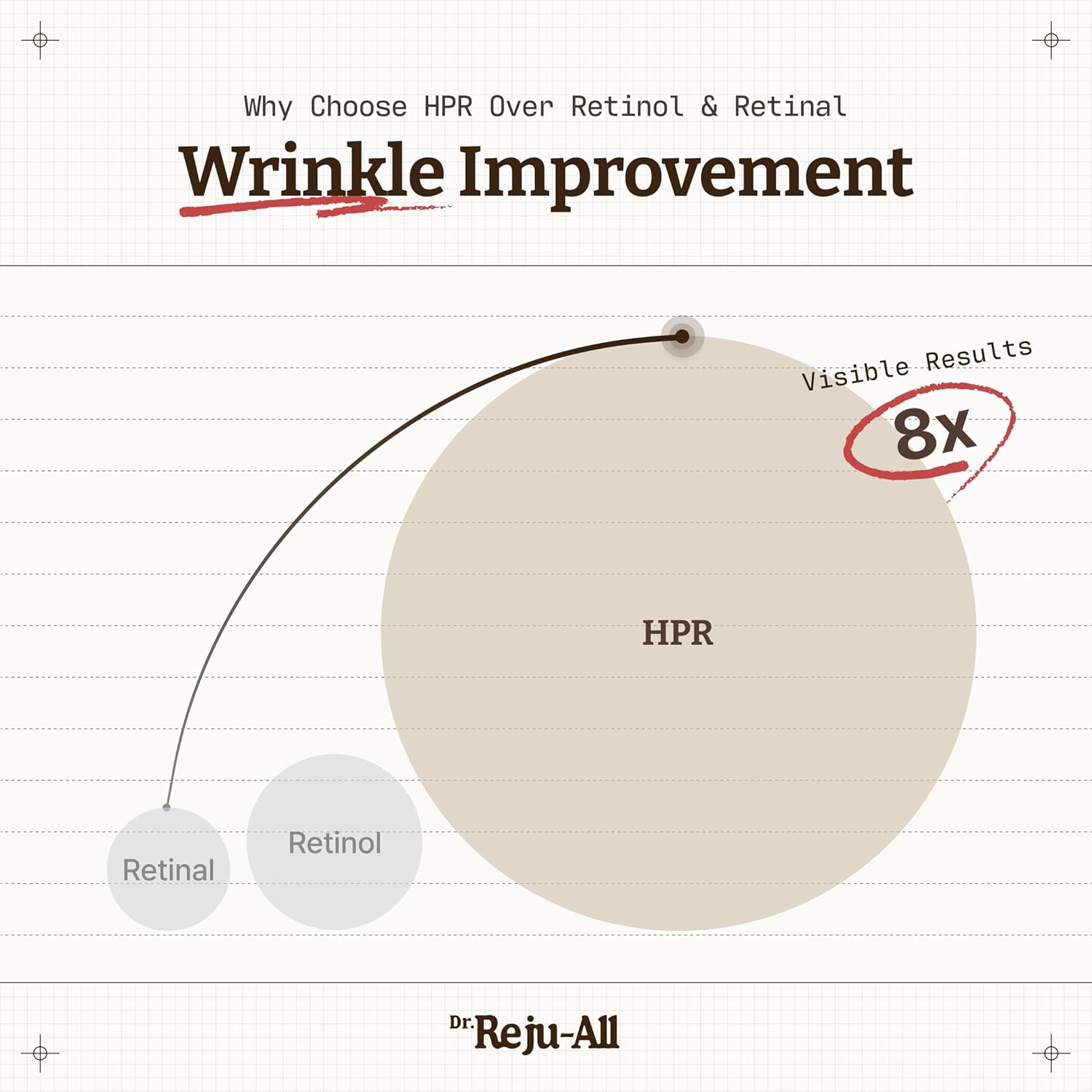 - VISIBLE RESULTS BEYOND RETINOL AND RETINAL — HPR delivers visible improvements in wrinkles, pores, and skin tone. Clinically proven 8x wrinkle refinement and 13x dark spot correction for smoother, radiant, youthful-looking skin.