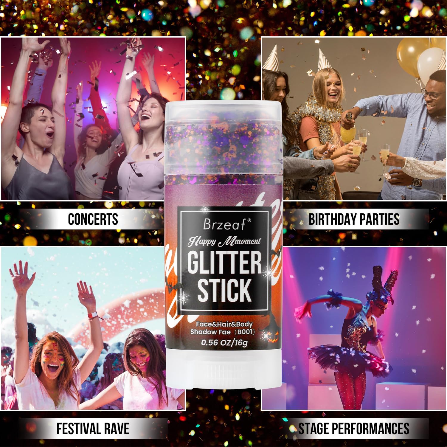 Brzeaf Halloween Body and Face Glitter Stick, Shimmery& Long Lasting, Hair Eyeshadow Face Body Glitter, Singer Concert Music Rave Festival, Glitter Stick Makeup & Face Glitter Gel