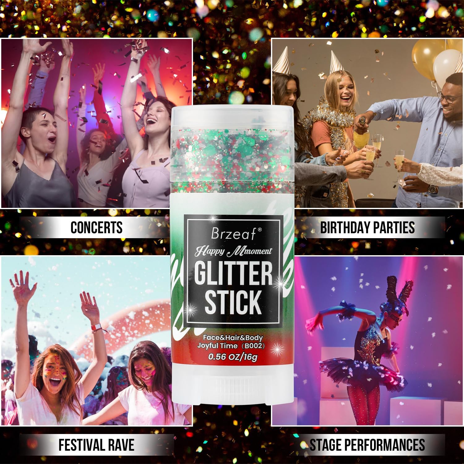 - 【Bright and Lasting Hold】Christmas body glitter stick is makeup product designed specifically for use as accessories for events such as music festivals, concerts, parties or holiday raves. Our face glitter stick will sparkle and shine, the color and shine of the sequins change with visual changes, releasing a dazzling light, allowing you to party and create your own sparkling look.