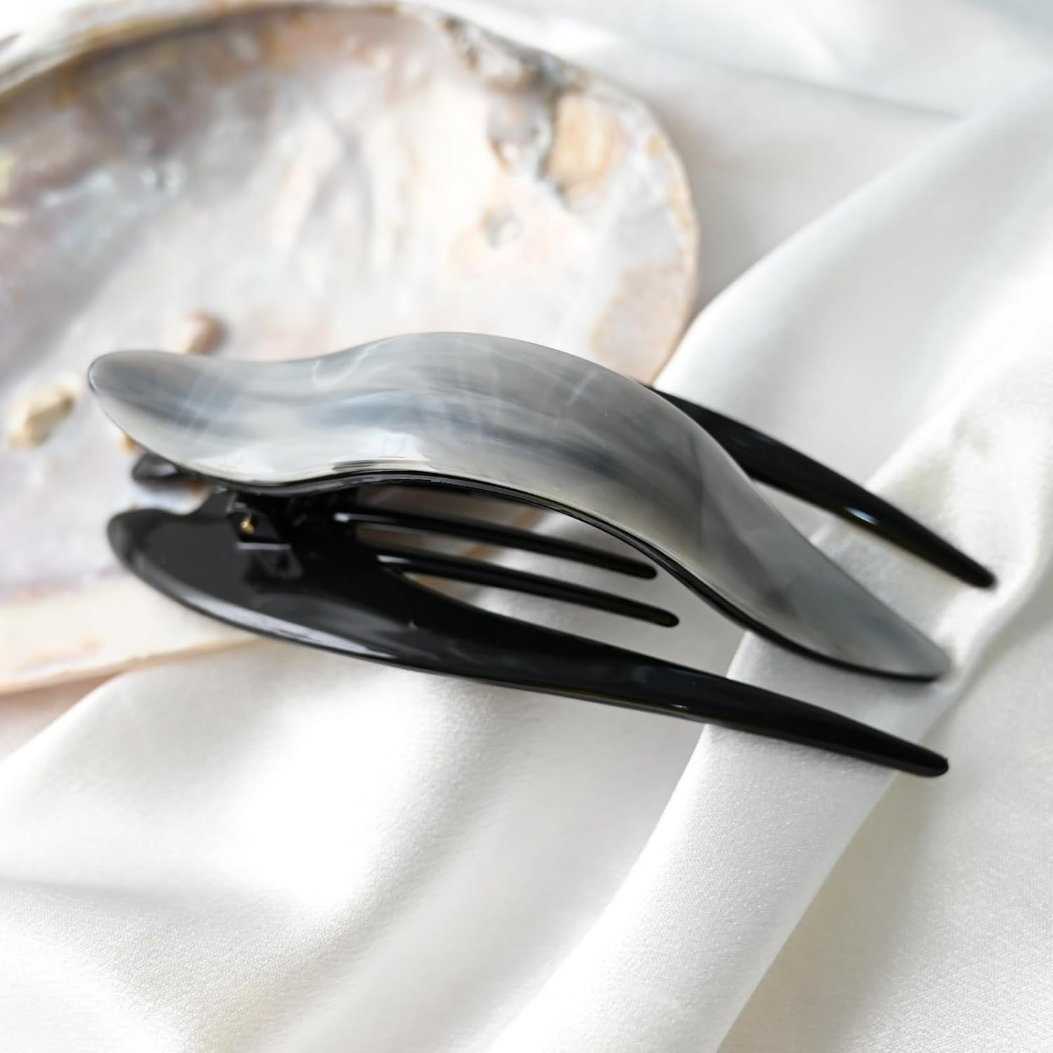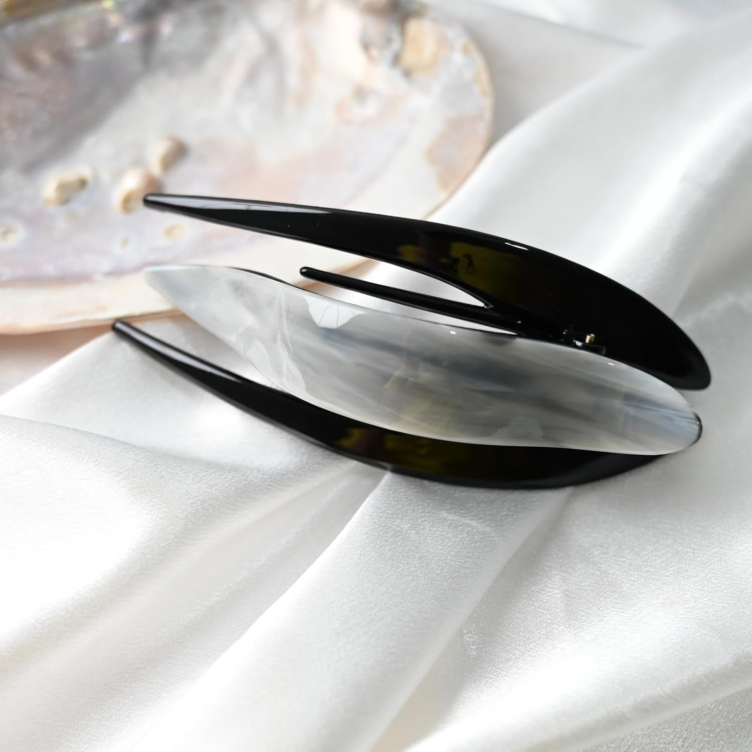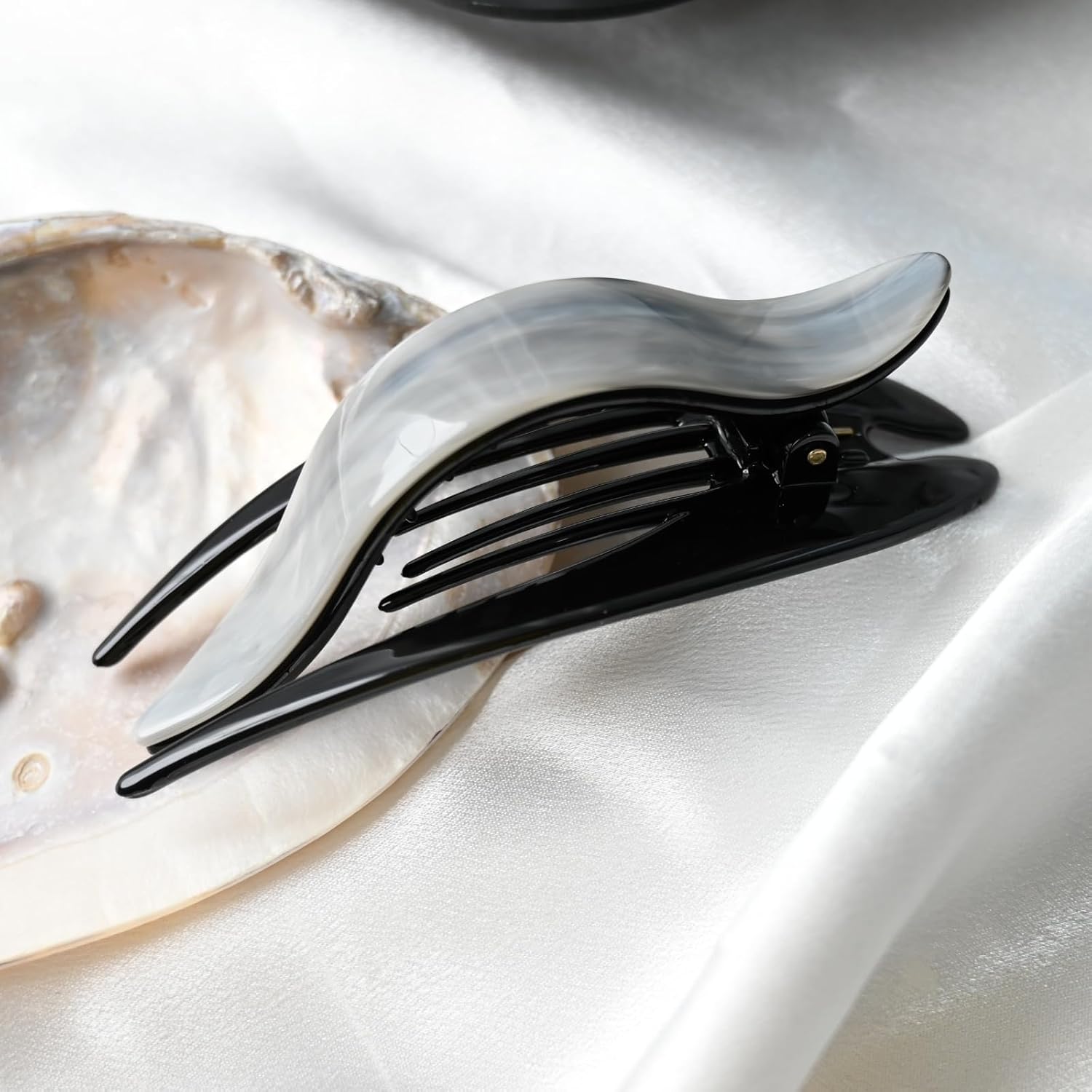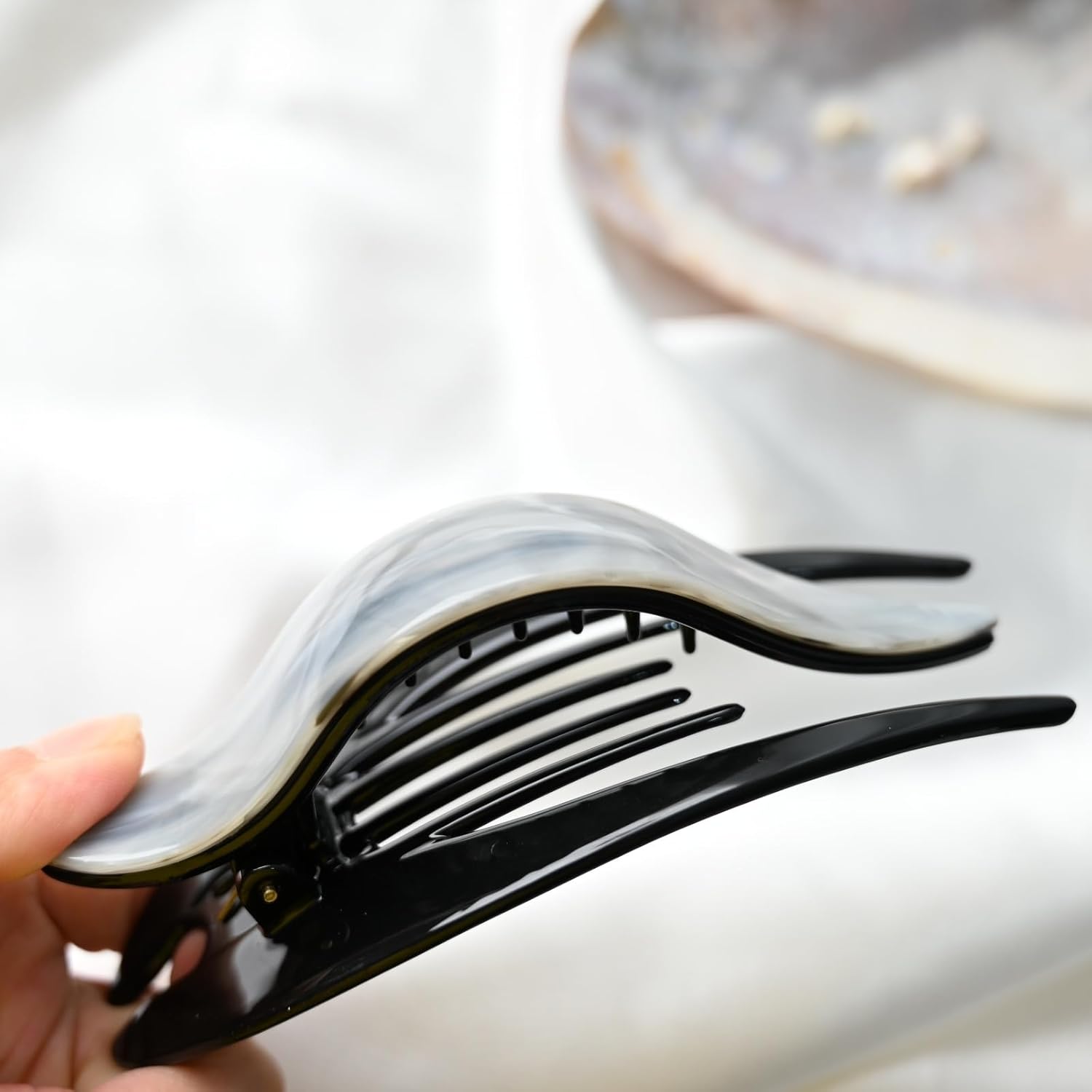 Handmade Celluloid French Design Tortoise Shell Barrettes Side-slide Opening Duck Luxury Fashion Accessories Hair Clip Claw for Women (slate grey)