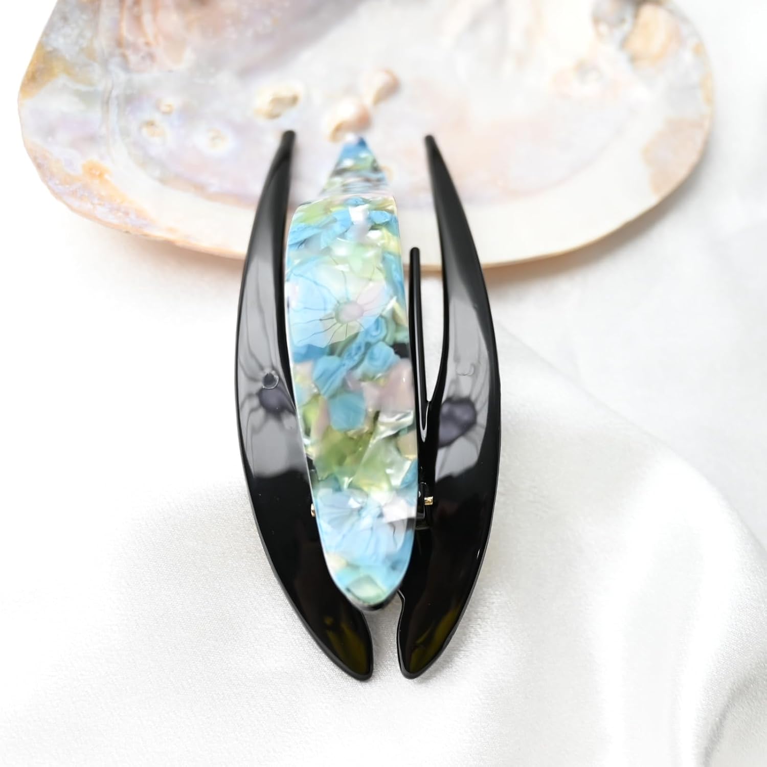 Handmade Celluloid French Design Tortoise Shell Barrettes Side-slide Opening Duck Luxury Fashion Accessories Hair Clip Claw for Women (mint green)