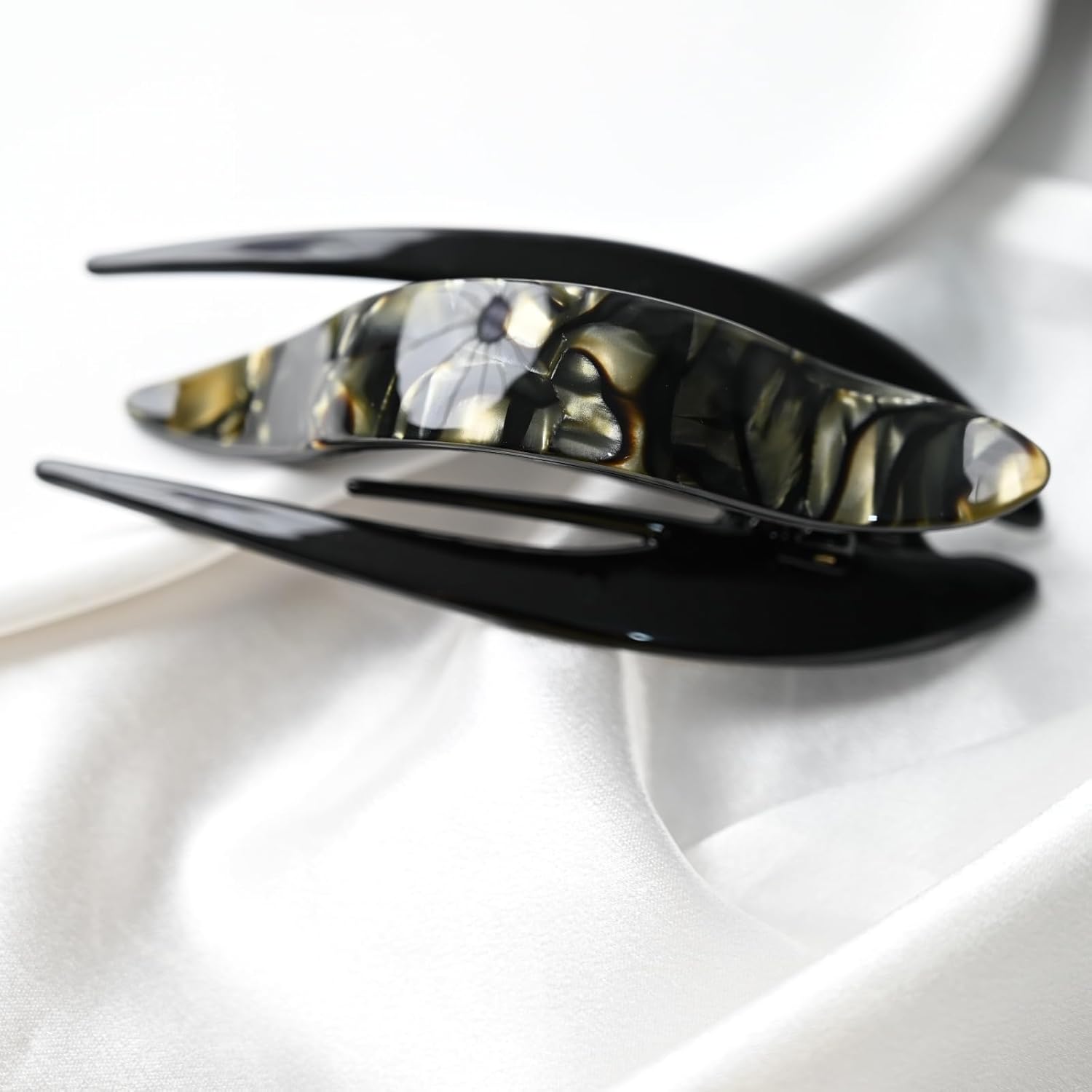 Handmade Celluloid French Design Tortoise Shell Barrettes Side-slide Opening Duck Luxury Fashion Accessories Hair Clip Claw for Women (tortoise grey)