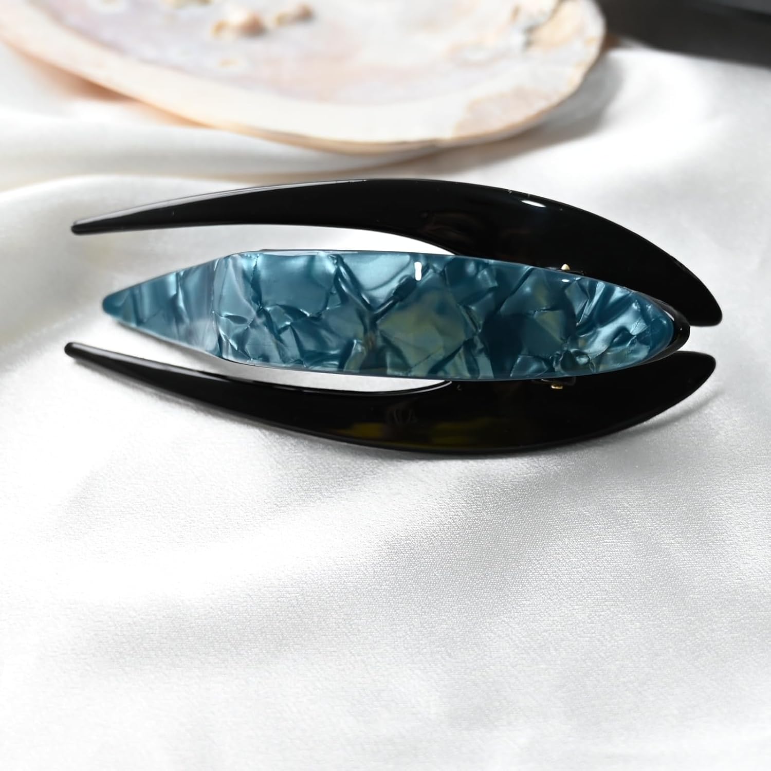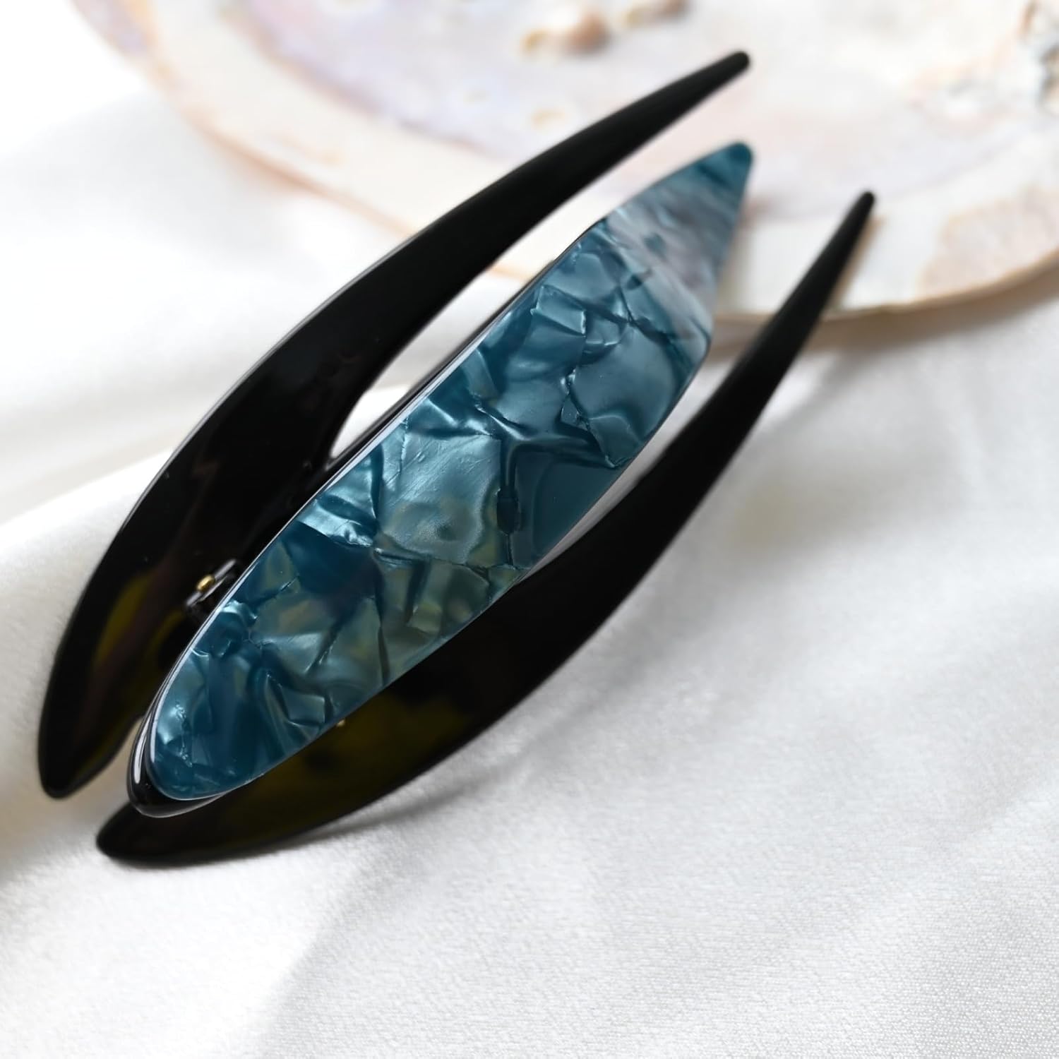 Handmade Celluloid French Design Tortoise Shell Barrettes Side-slide Opening Duck Luxury Fashion Accessories Hair Clip Claw for Women (bluegreen)