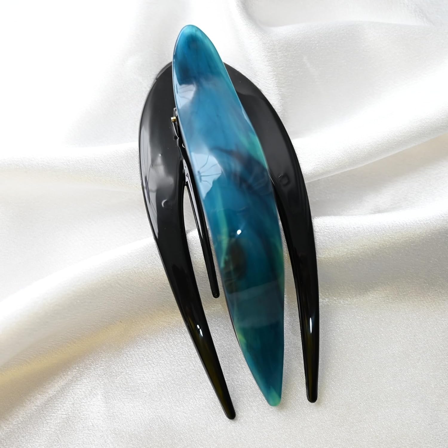Handmade Celluloid French Design Tortoise Shell Barrettes Side-slide Opening Duck Luxury Fashion Accessories Hair Clip Claw for Women (peacock green)