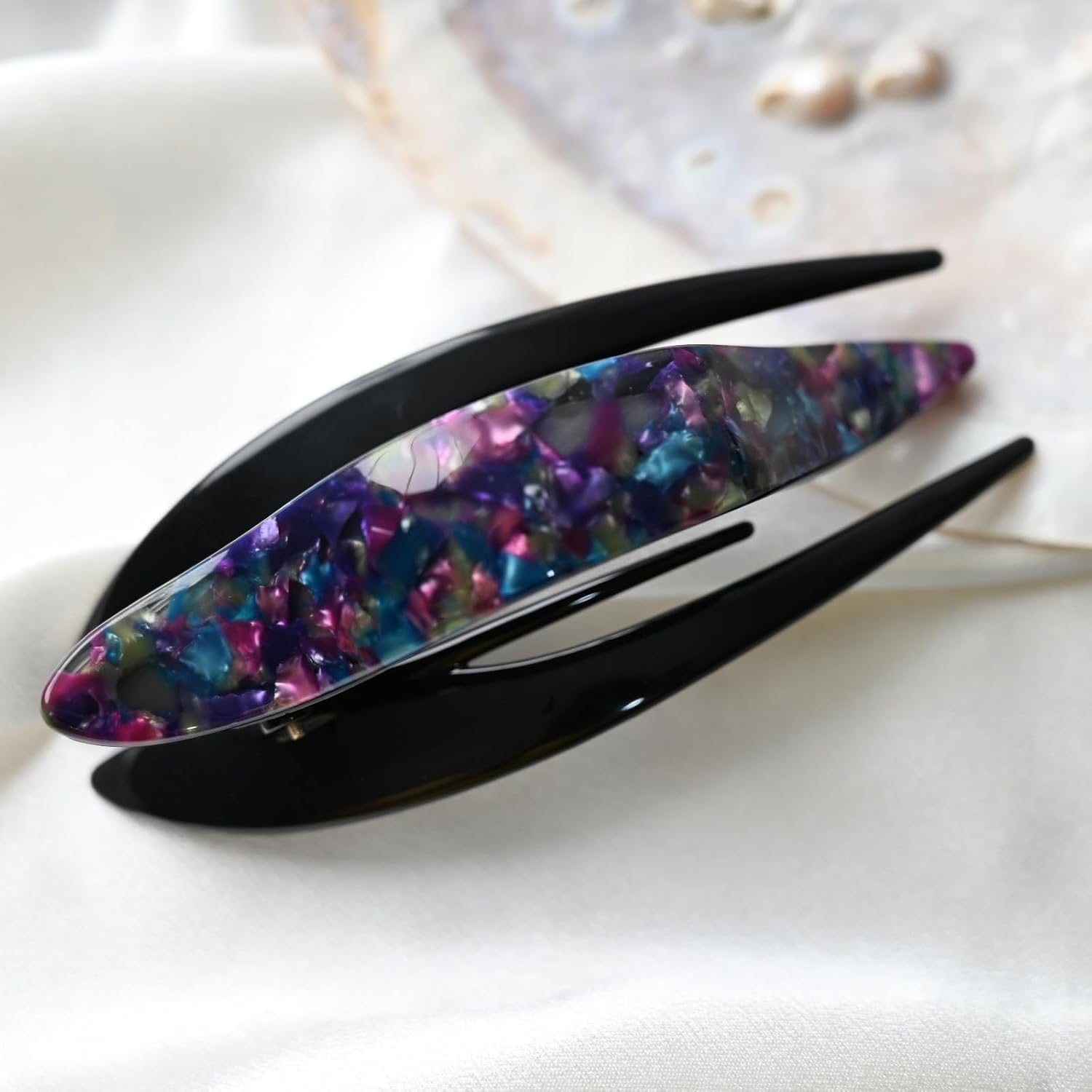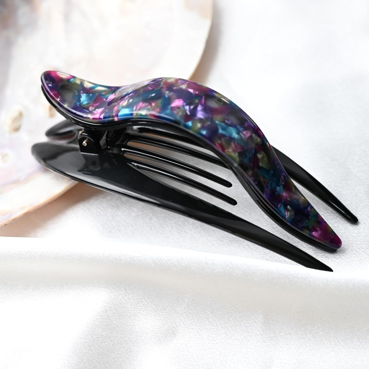 Handmade Celluloid French Design Tortoise Shell Barrettes Side-slide Opening Duck Luxury Fashion Accessories Hair Clip Claw for Women (floral purple)
