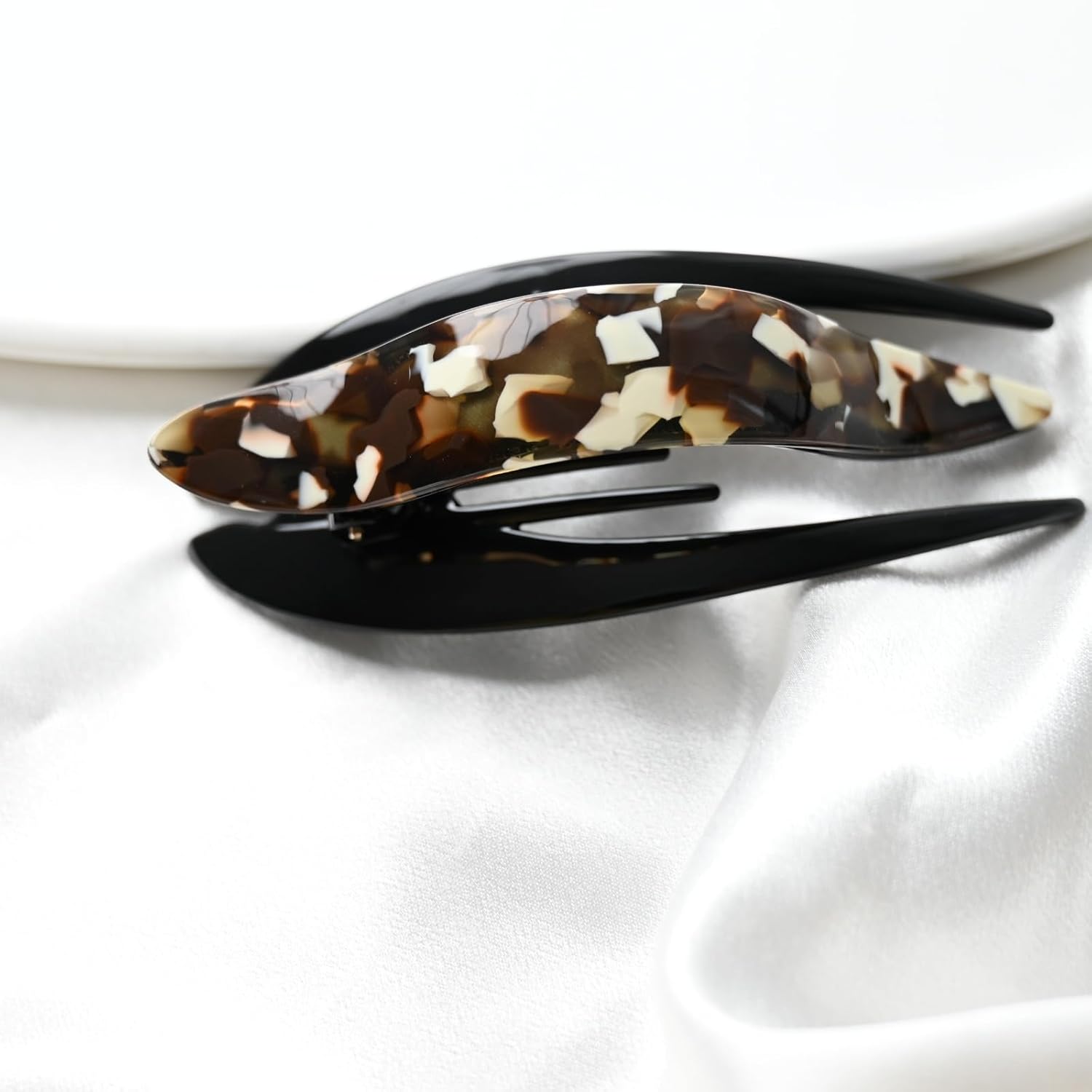 Handmade Celluloid French Design Tortoise Shell Barrettes Side-slide Opening Duck Luxury Fashion Accessories Hair Clip Claw for Women (mocha coffee)