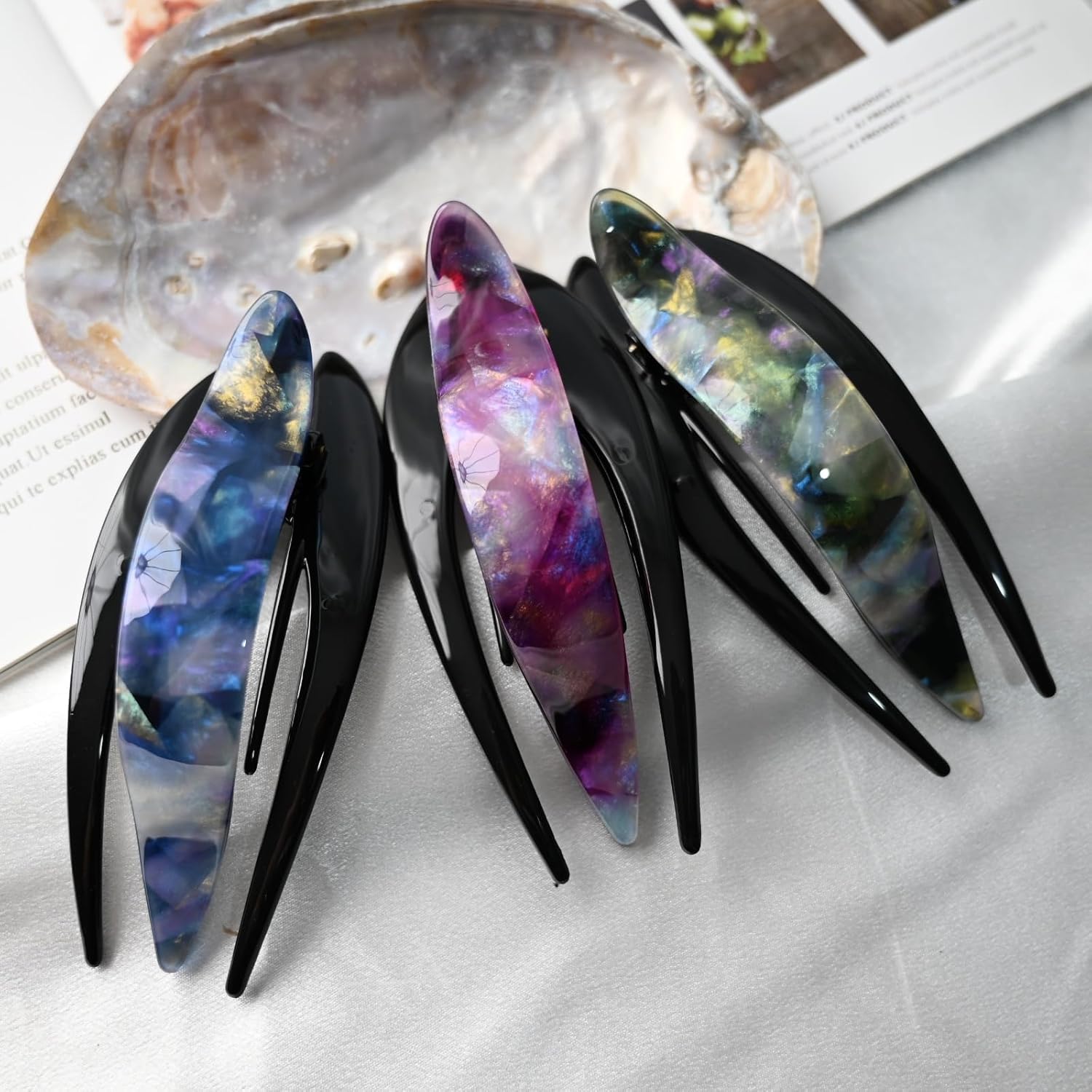 Handmade Celluloid French Design Tortoise Shell Barrettes Side-slide Opening Duck Luxury Fashion Accessories Hair Clip Claw for Women (Aurora green)