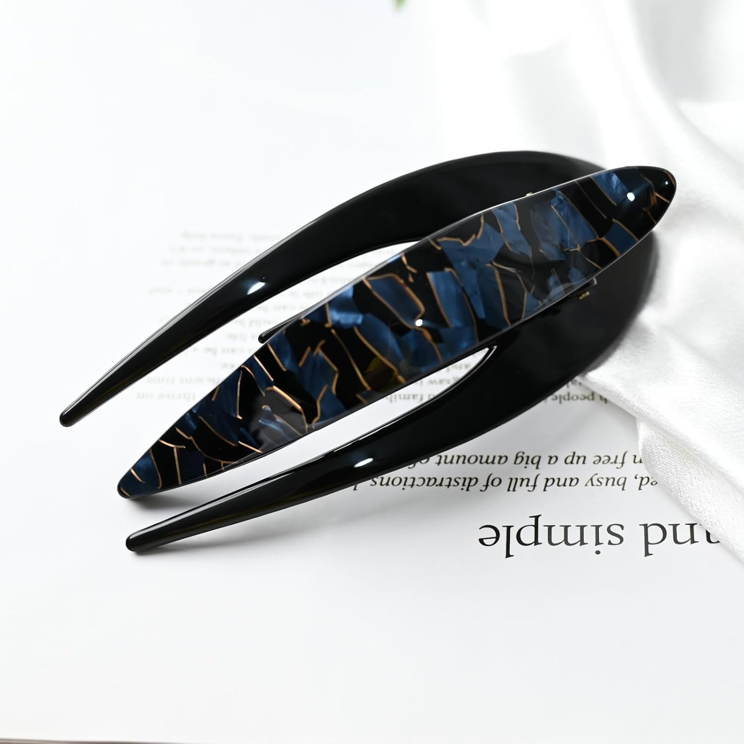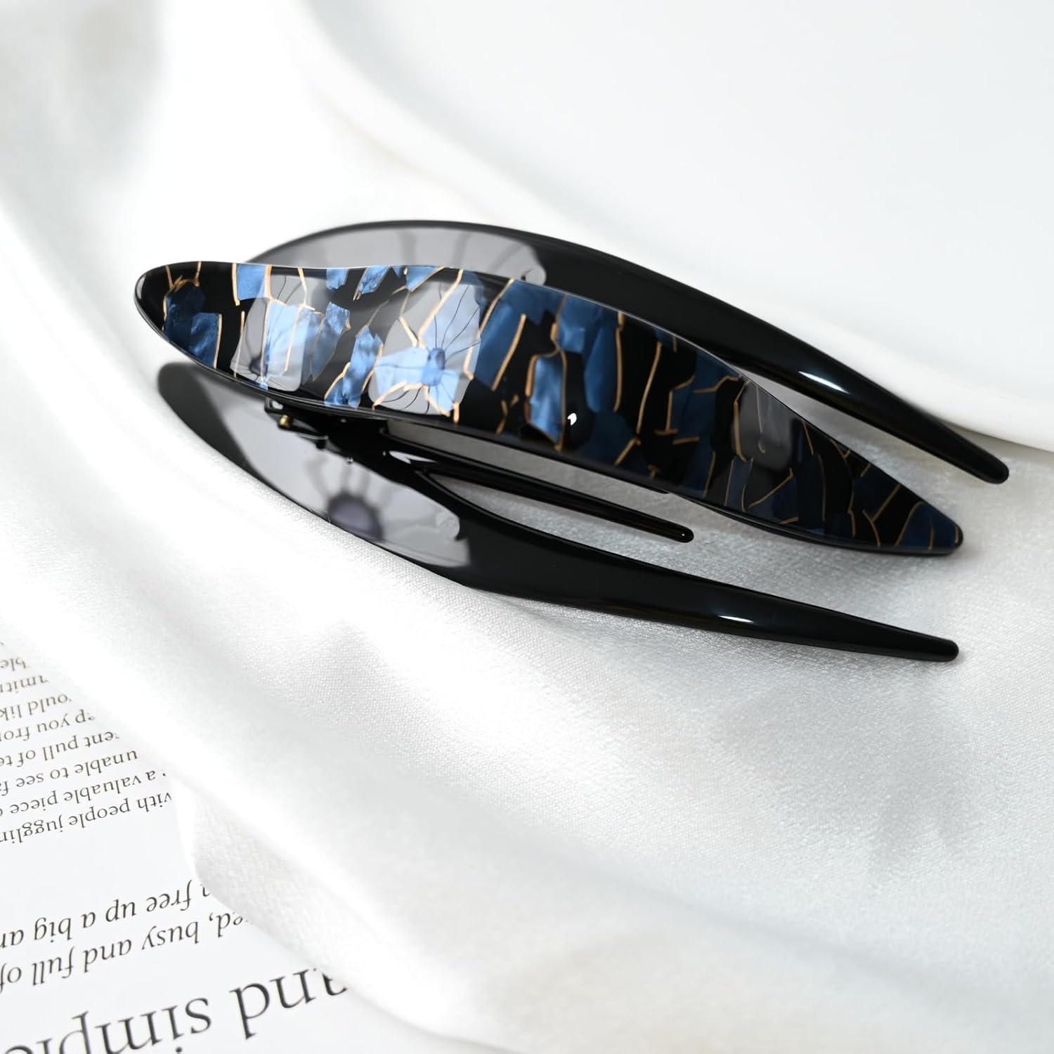 Handmade Celluloid French Design Tortoise Shell Barrettes Side-slide Opening Duck Luxury Fashion Accessories Hair Clip Claw for Women (marbleblue)