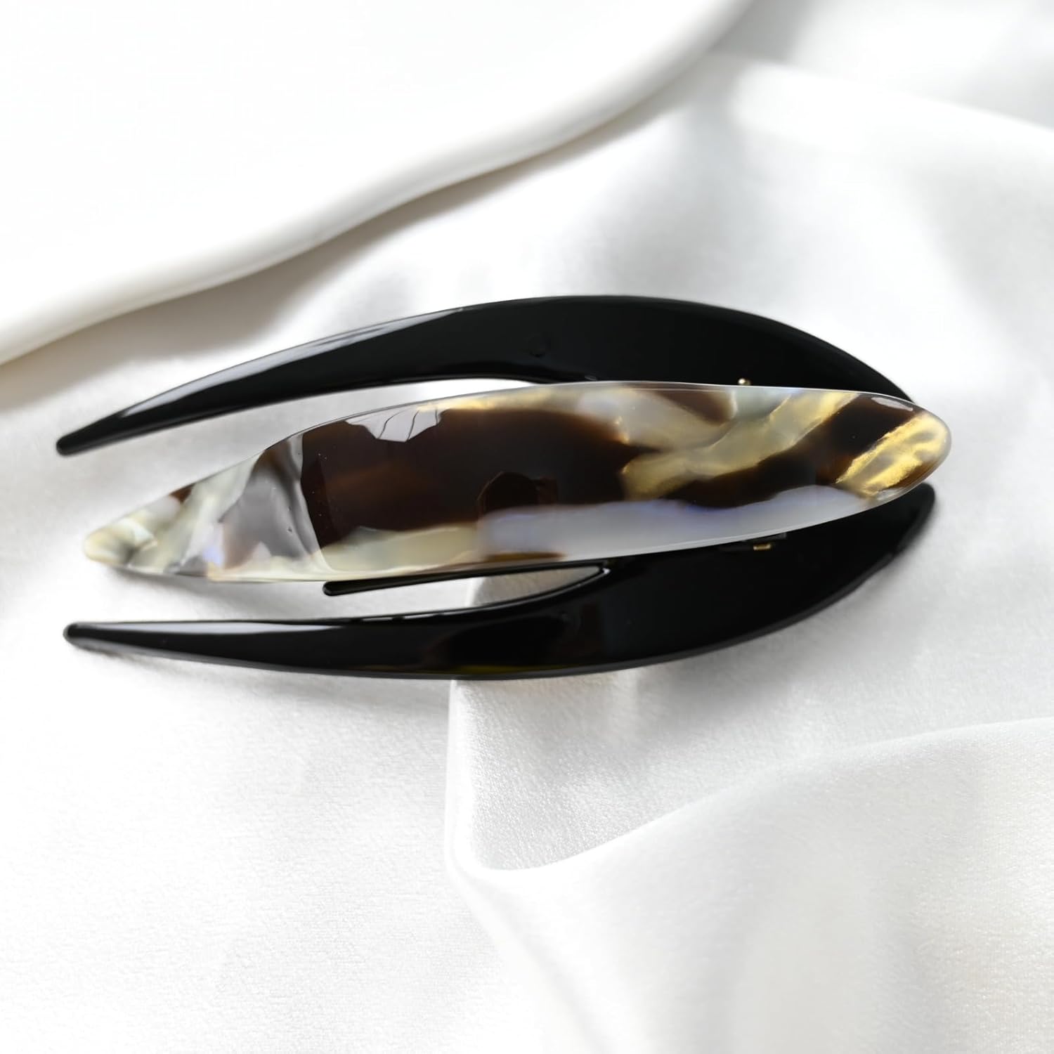 Handmade Celluloid French Design Tortoise Shell Barrettes Side-slide Opening Duck Luxury Fashion Accessories Hair Clip Claw for Women (coffee)