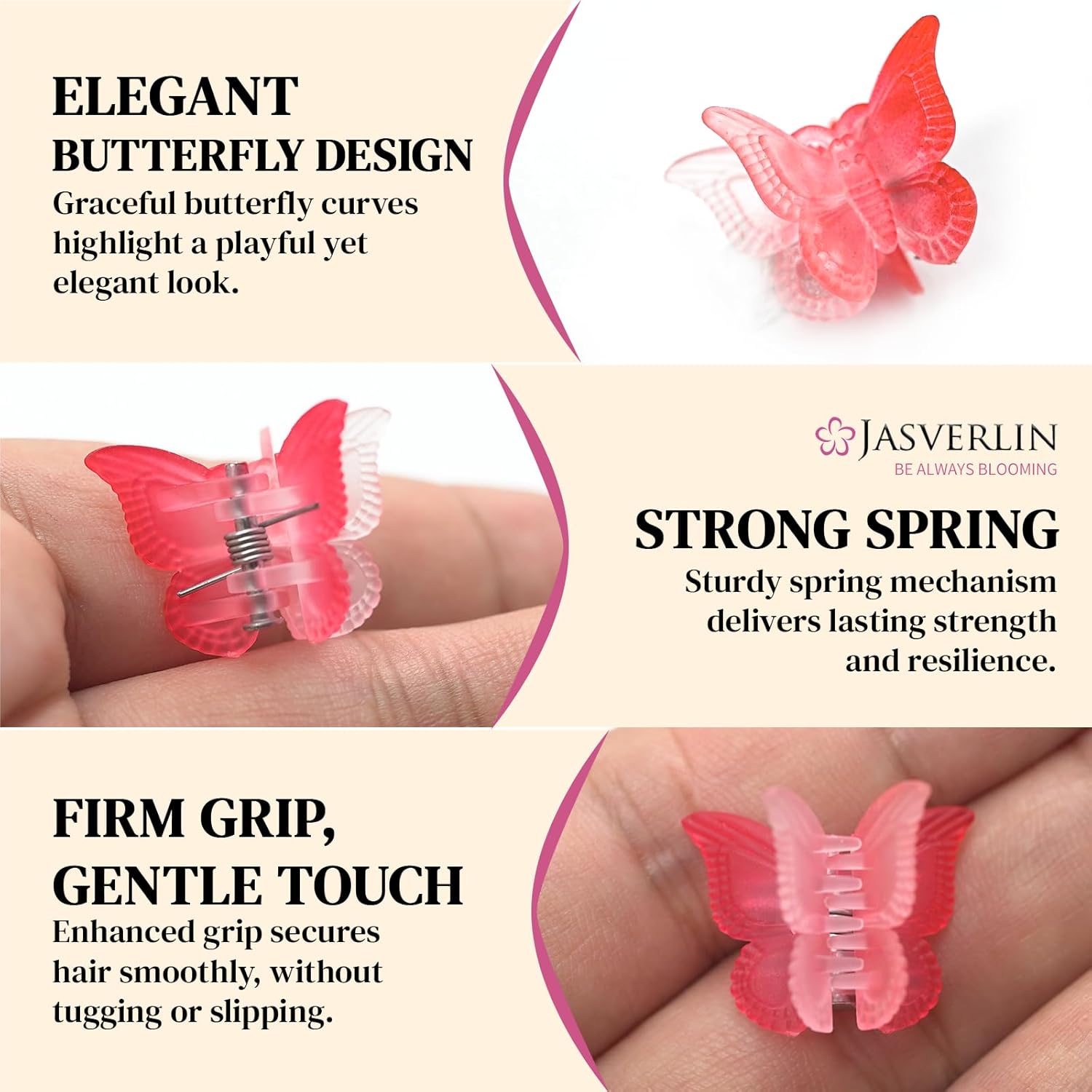 - Superior Quality Shine: Embrace 90s style with these JASVERLIN mini butterfly hair clips for girls, crafted from premium plastic and metal. Designed for all hair types, these durable, non-slip, and rust-resistant clips add a touch of vigor to any occasion