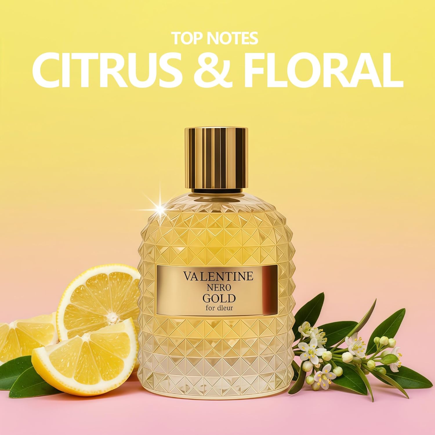 Cologne for Men Valent Nero Gold 3.4 Fl Oz Eau de Toilette Spray Noted with Floral,Lemon, Rose Essence, Sensual White Musk Fragrance Men's Perfume for Daily Use