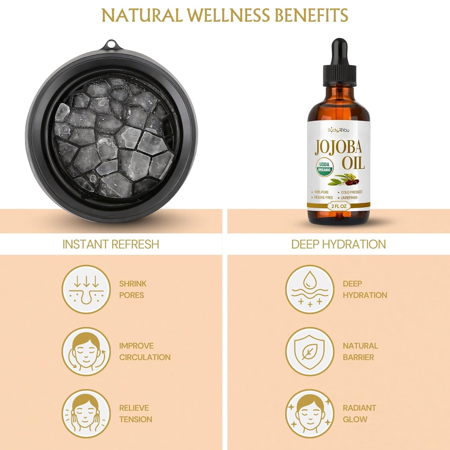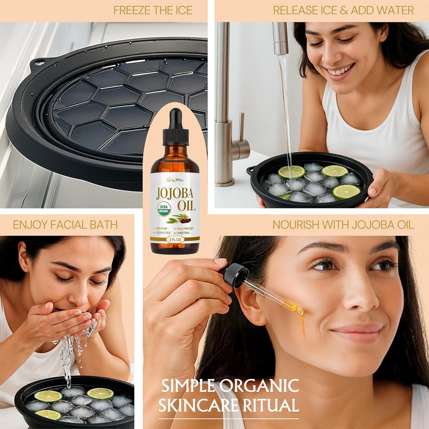Face Ice Bowl Ice Bath Cold Plunge Dunk Dip - Silicone Collapsible Bucket Tub Subzero Basin Facial Plunge Bowl - Face Washing Ice Water Cleanse Jojoba Oil Dropper Skin Hair Lashes - 2 Fl Oz