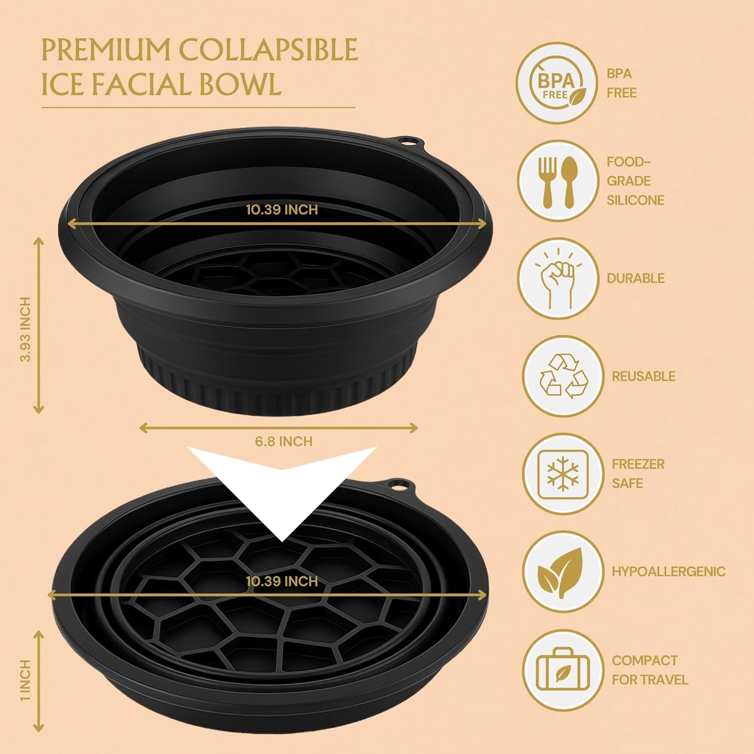 - COLLAPSIBLE FACE ICE BOWL: Foldable Silicone Bowl to Ice Bath Facial Plunges Compresses Flat to Save Space and Expands Instantly to Use. Ideal to Home Skincare Routines, Gym Recovery Sessions, or Cold Plunge Therapy During Travel or Business Trips