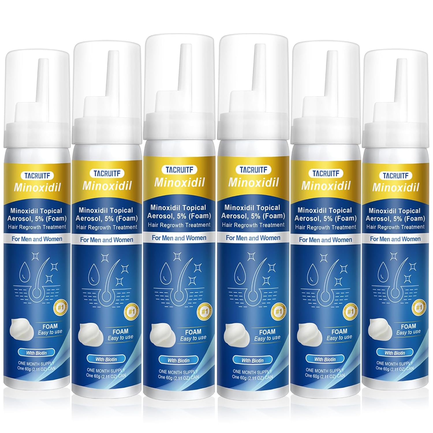 5% Topical Minoxidil Foam, Minoxidil for Men and Women, Infused with Biotin, Hair Growth Treatment, Supports Thicker, Fuller, Healthier Hair & Beard (Foam,6 x 2.11oz,6 Month's Supply)