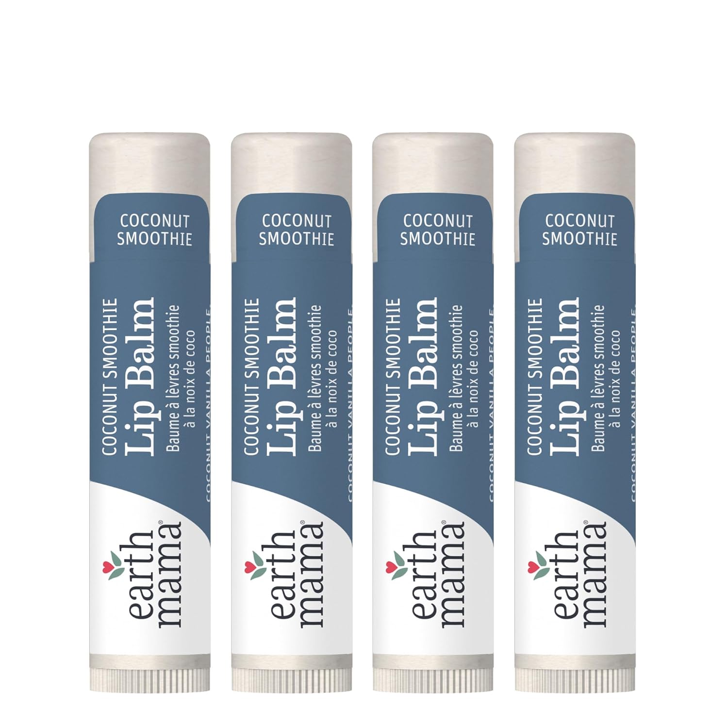 Earth Mama Lip Balm Set | Coconut Smoothie 4-Pack | Lip Moisturizer with Organic Coconut Oil for Sensitive Skin
