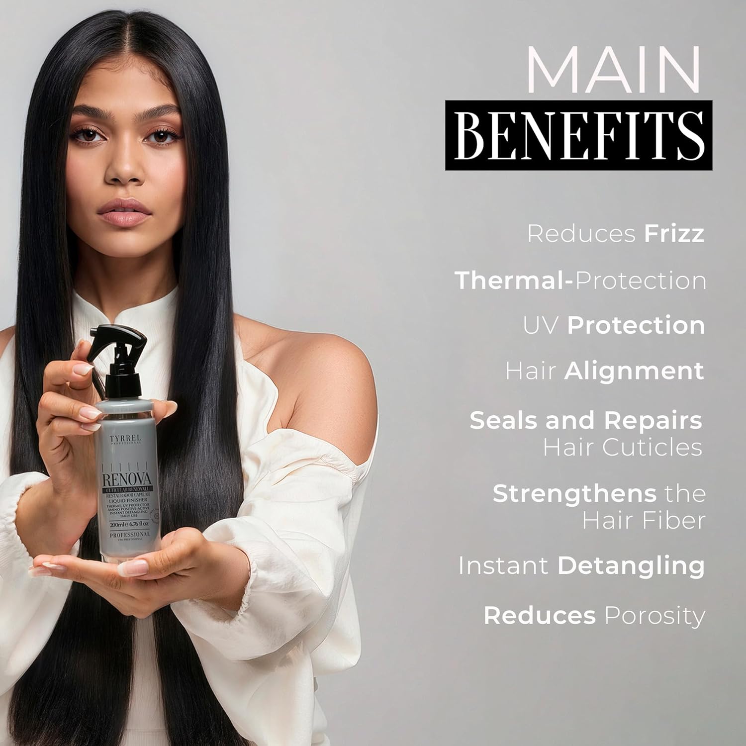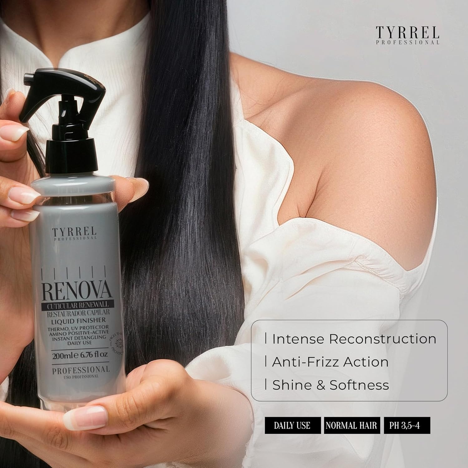 Renova Renewal Finishing Serum 6.76 fl oz – Leave-In Heat Protectant for All Hair Types – Smooths, Controls Frizz, and Supports Styling – Lightweight Formula – Floral Scent – Tyrrel