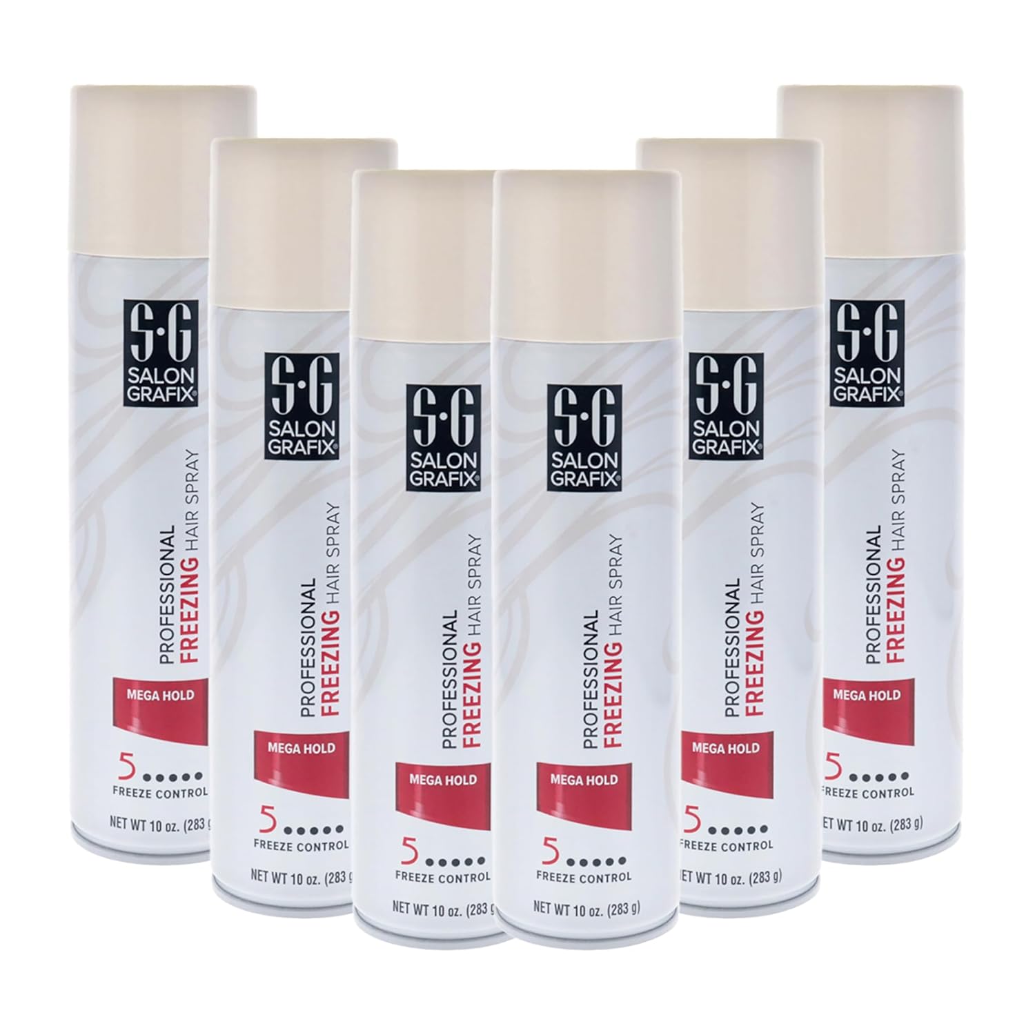 Salon Grafix Freezing Hair Spray Mega Hold - Quick-Drying Hairspray for Women and Men - Volumizing Formula - Professional Quality Results - 6 pc