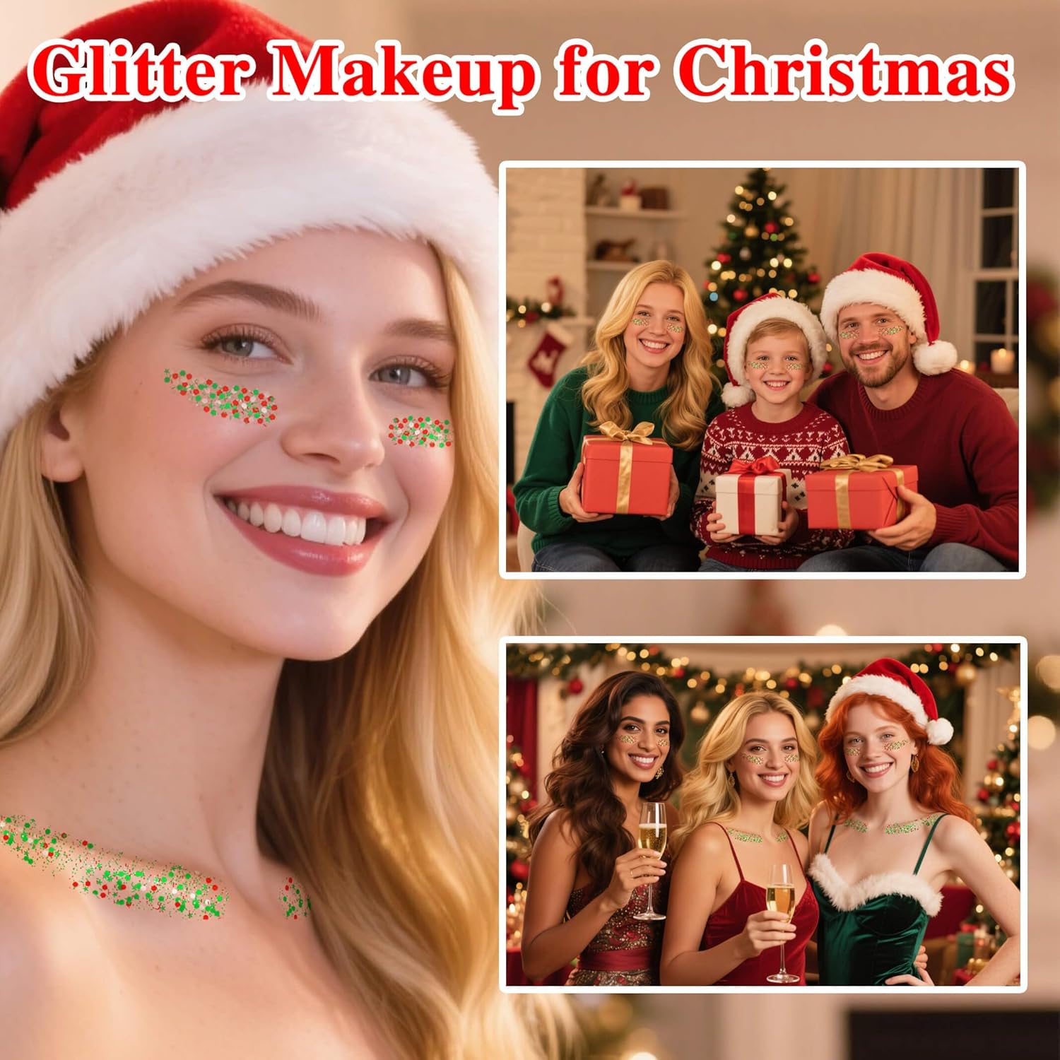- CHRISTMAS GLITTER STICK:Infused with fine and large, square, circular and star shaped,sparkling sequins, the green and red face and body glitter sitck creates a dazzling, eye-catching effect. Whether you're channeling christmas costume or simply adding some shimmer to your look, this glitter stick is sure to make you shine