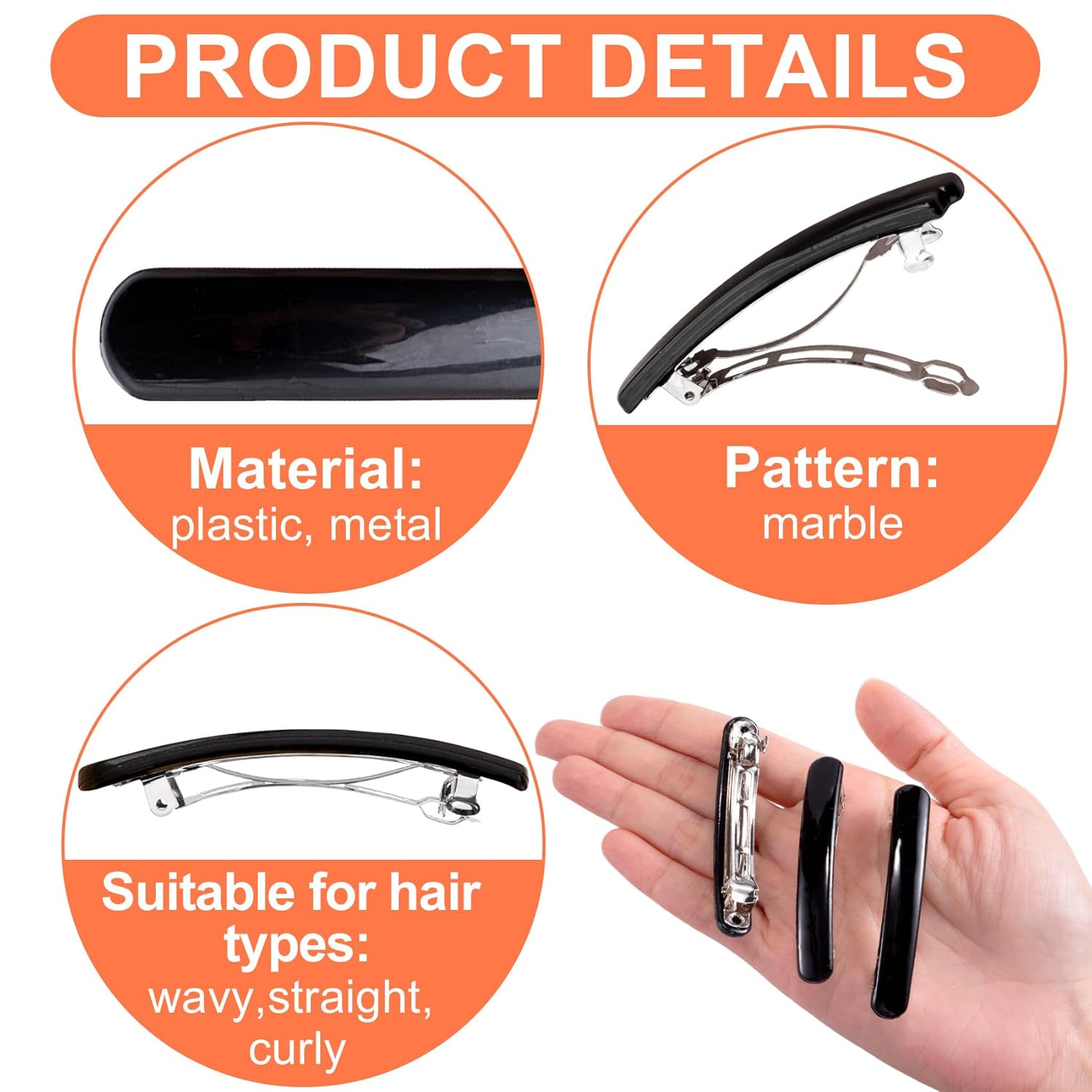 - Multiple Occasions: These black barrettes are universal for curly wavy, long, straight, thick and thin hair, and suitable for dating, parties, travelling, exercising, weddings, and more situations.
