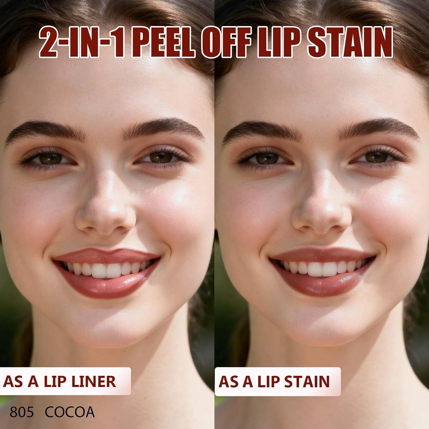 Lip Liner Stain Peel Off with Tweezer, Long Lasting Matte Lip Tattoo, Highly Pigmented Color Lip Makeup, Waterproof, Transfer-proof Lipstain for Women, COCOA