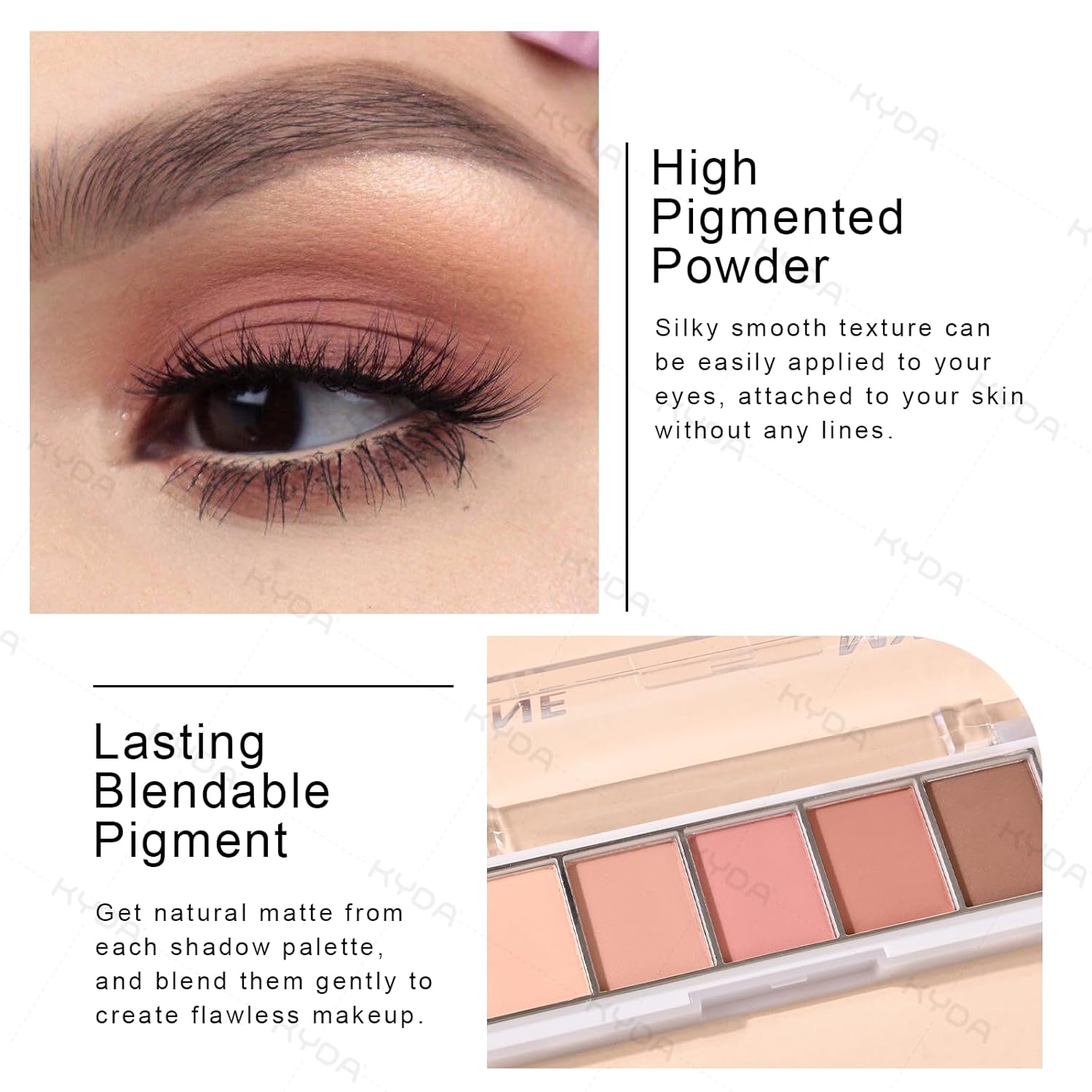 - 【Lasting Blendable Pigment】Each eyeshadow tray contains 5 colors, saving you the time to choose how to match your eye makeup, and each one is perfect for everyday looks, get shiny glossy and natural matte from each shadow palette, and blend them gently to create flawless makeup.