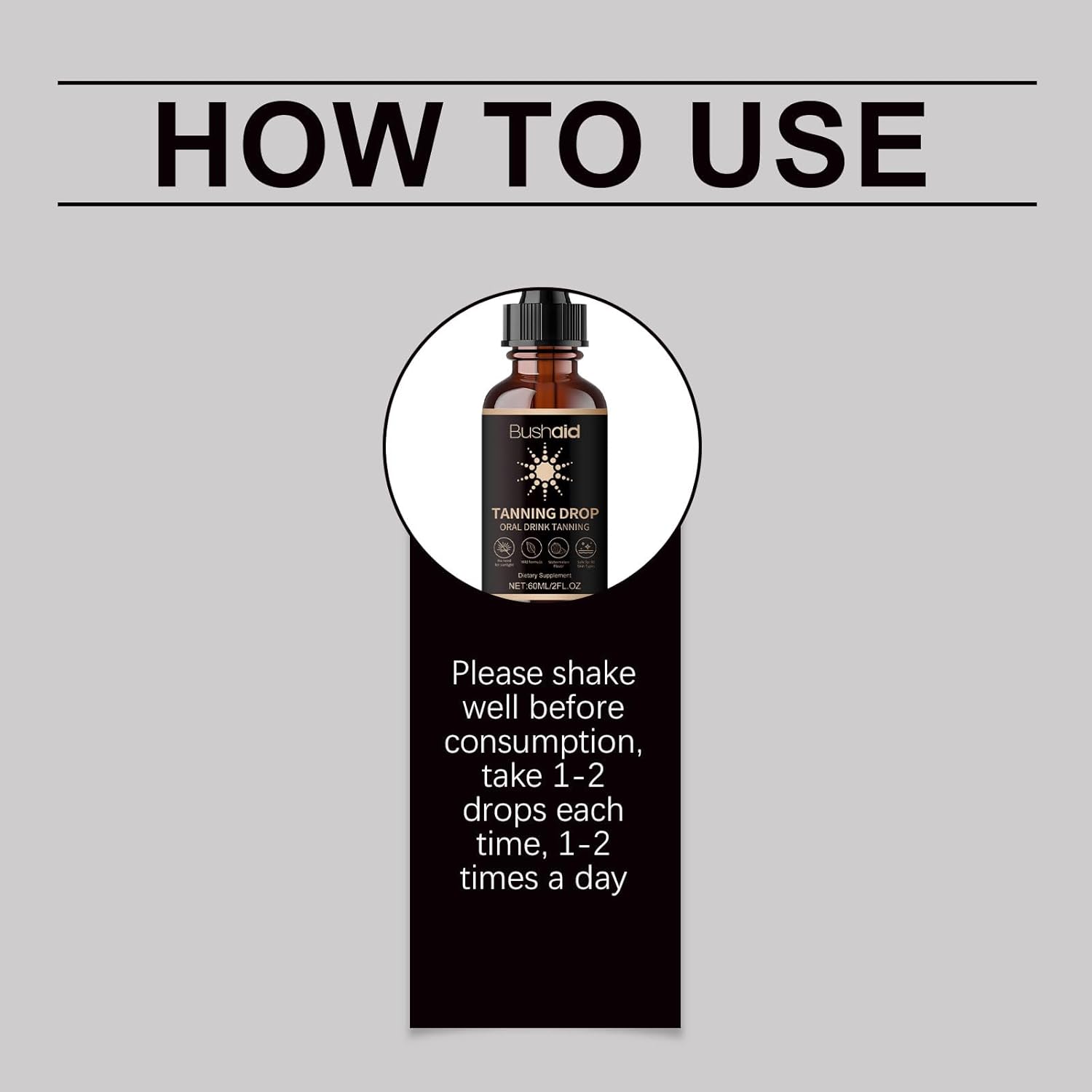 - 🏖️【EASY DAILY USE】Add the recommended number of drops to your favorite beverage, such as water, juice, or smoothies, once to twice a day for optimal results. The more drops you use, the darker your tan will be. Adjust the dosage at any time to meet personalized tanning needs.