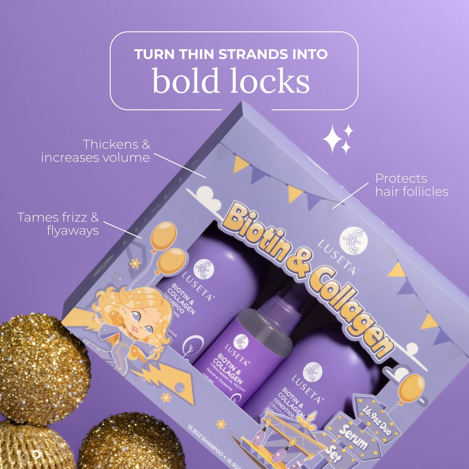 - FOR THINNING HAIR: L LUSETA biotin & collagen biotin and conditioner combo promotes hair strength & thickness. The LUSETA hair oil can add volume and dimension for a fuller look.